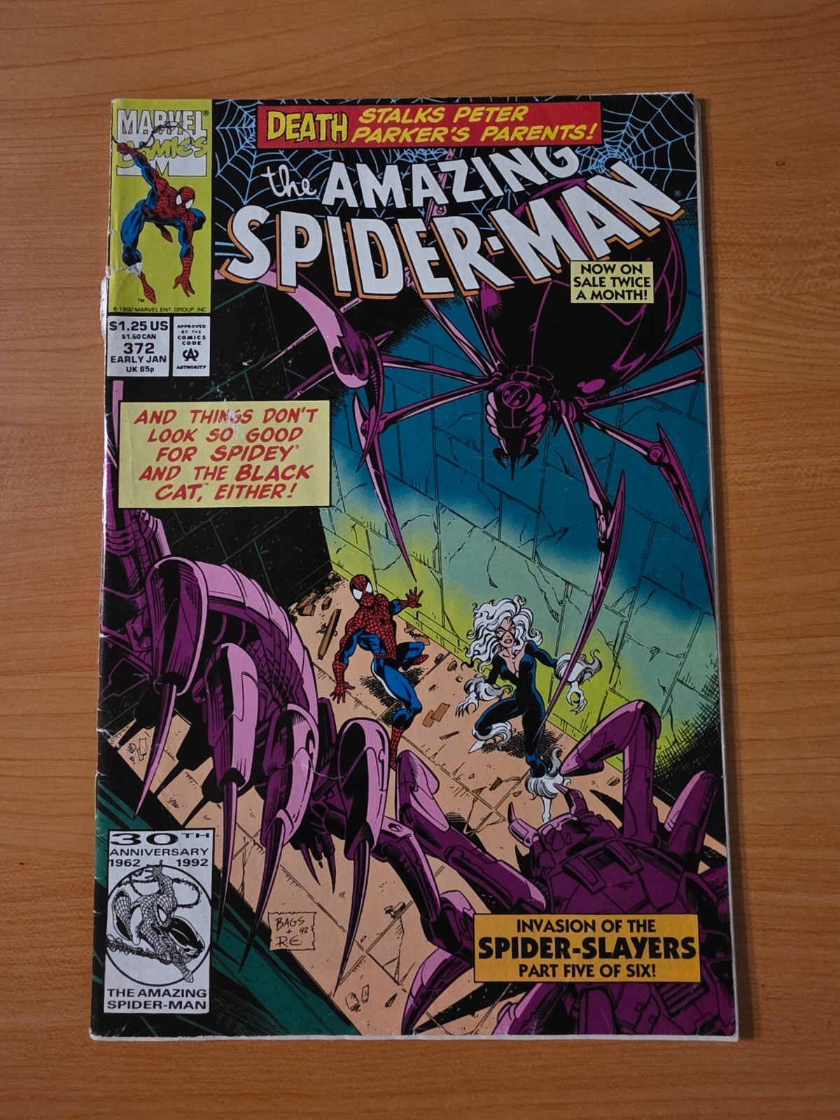 Item DescriptionAmazing Spider-Man #372Publisher: Marvel ComicsPublished: 1993Item Grade/ConditionGrade: DOLLAR BIN (No Grade Assessment Done, see pictures!)DISCLAMER: While there absolutely are NM books in our dollar bin, many will be low to mid grade. please do not assume minty books these are great for reading and kids but less so for collectors where condition matters! ?For more information about this grade and other grades, please see our grading standards.~ WE TAKE HIGH DEFINITION PICTURES OF OUR COMICS ~ For more detail use the ZOOM Function and check them out yourself! ~Shipping Info:United States: Comic Book & Magazine Orders of all sizes, big and small ship for a flat Single Shipping ChargeInternational: We use Calculated Shipping! ~ This insures that you get the LOWEST POSSIBLE COST! ~ Please give us one business day to calculate large orders! The Calculator for Hip is pretty bad for international, contact us if you are looking to order multiple books so we can help you make it work on the back end! As a courtesy to our customers, we insure all orders over 50$ US ~ YOU DONT PAY EXTRA!Delivery TimeWe process and ship all orders within 1 business days. Once shipped, estimated U.S. transit time is 2-10 business days; international 14-21 business days.(Orders placed on Friday afternoon as well as weekends will be shipped the next business day as we do not ship on the weekends).PackingOmnomax Traders has mastered packing to ensure our orders of a "damage-free transport."Using the following methods, we have seen a nearly perfect 99% success rate for undamaged comics!Here is how our orders ship:All Orders :Bagged AND Boarded, ALWAYS NO EXCEPTIONS!Shipped in a Gemini Comic Mailer OR Tightly secured between 4x stiff pieces of corrugated cardboard (double Sandwiched)Sealed on all 4 sides with strong packing tape (Items doesn't even wiggle).:*Now this method is nearly perfect! however we have seen damage happen to items ( only once or twice a year ) ~ this is often due to bad handling by the postal service. Always remember to contact us if this happens! we are committed to quality service!*Offers History