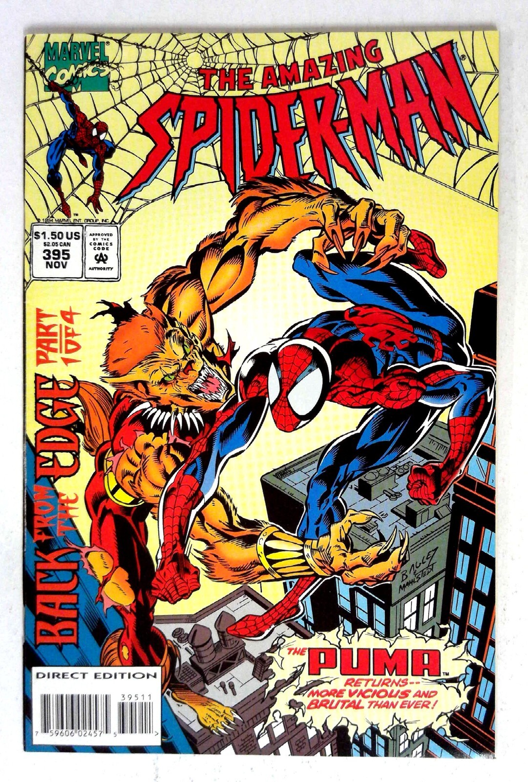 Amazing Spider-Man #395 (1994) Puma VF/NM Amazing Spider-Man Featuring Puma in a major storyline. Part of the 'Back from the Edge' series, showcasing powerful artwork and intense action. TITLE: Amazing Spider-Man ISSUE: 395 GRADE: VF/NM SKU: VE-37-080Seller Information