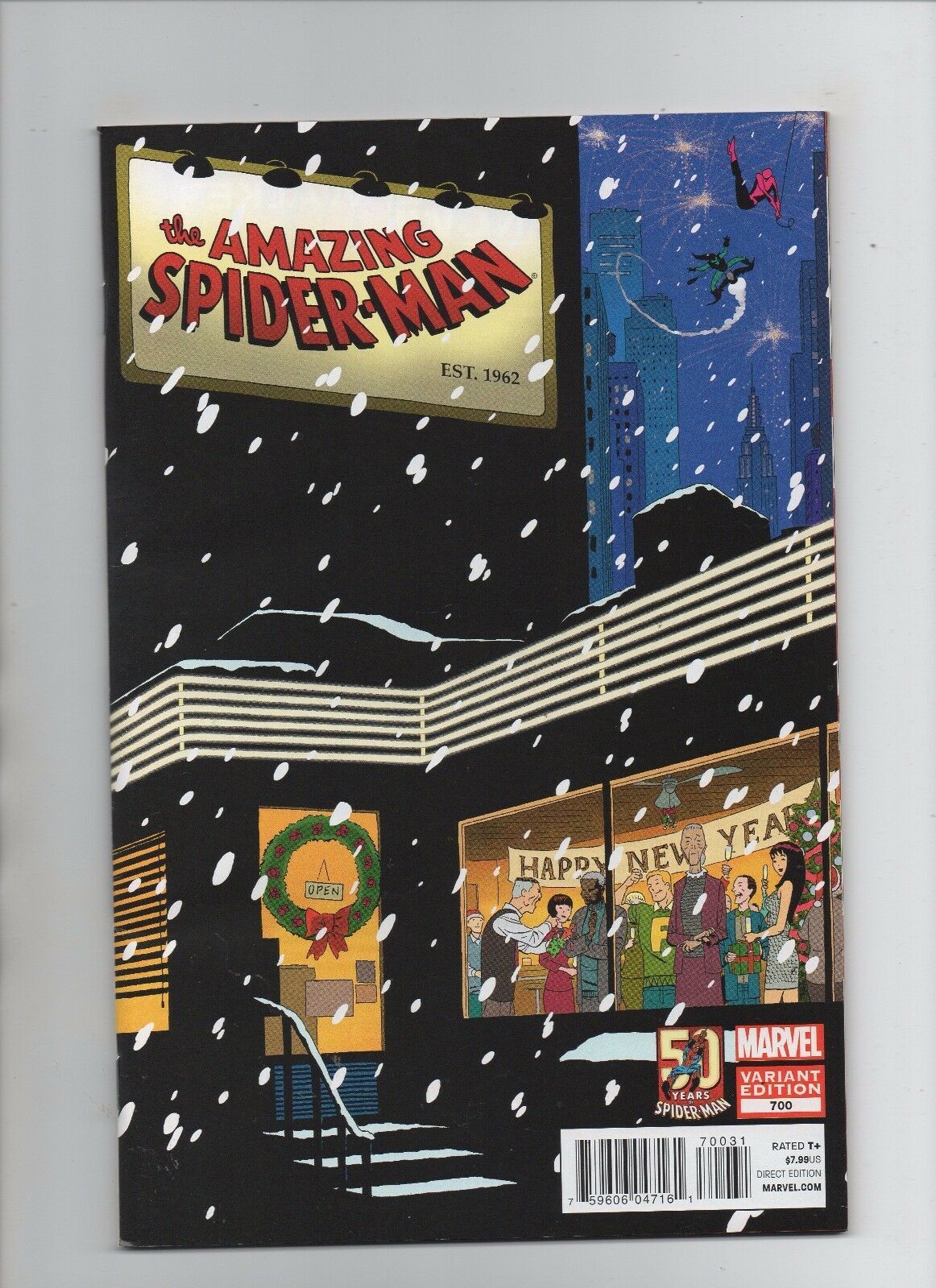 Amazing Spider-Man #700 - Variant - Last Issue! - (Grade 9.2) 2013Size: 7" x 10"This item was uploaded by Kristen.If you have any specific questions or requests, please ask us prior to ordering and we'll get back to you as soon as we can. If there are any problems with your order whatsoever, please message us before leaving feedback and we'll be happy to work with you to fix the situation! We ship worldwide, combine purchases, and charge exact shipping. The price may vary based on size, weight, and location. If you are automatically overcharged for shipping, message us and we'll be happy to revise the invoice or refund you the excess amount. If you have any questions regarding shipping, please message us. International Buyers - Please Note: Import duties, taxes, and charges are not included in the item price or shipping cost. These charges are the buyer's responsibility. Please check with your country's customs office to determine what these additional costs will be prior to bidding or buying. Payment can be made by PayPal and credit cards directly. 70,000+ items in total in my Hip store! Frequently Asked Questions: When are your operation hours?Our in office hours are Monday - Friday, 11 am - 9 pm. We are not open on weekends, so if you send us a request on Friday evening we won't get back to you until Monday afternoon. Please don't take it as us ignoring you! We will work on your request Monday and get back to you as soon as we can. Also, if you order from us on a Friday evening or Saturday morning we won't start processing your order until we open on Monday. That means on Monday it will be pulled and prepped for shipping, then picked up by the postman on Tuesday morning.When will you ship my item? The tracking hasn't moved.We realize you're eager to get your item, so if the tracking hasn't moved in a few days please don't be concerned. We give the postman a lot of packages daily, sometimes as many as 100, so he does not scan each item for us upon pickup as he says it would be too time consuming for him to do so. If you get a tracking number from us, that almost always means your item was picked up by the postman the next business day. The USPS is also imperfect. There are times when the tracking won't even show movement until it's in your area's regional distribution center. This is normal in our experience. Is the item pictured the exact one for sale?Yes! We don't use stock images and go through great lengths to scan or photograph everything we list. The item pictured is exactly what you should receive UNLESS it is a fixed price listing with multiple items available. Can you issue a COA? We can, upon request. Please make sure you leave us a note while checking out and shoot us a message immediately after requesting one, just to be sure. How do you grade?Grading is very subjective, but we are professionals with decades of grading experience between us who try the best we can to accurately describe the condition of the items we list. Anthony is an Overstreet Comic Book Price Guide Advisor Please see the grading chart below for a breakdown of how we grade: NOTE: We don't grade any raw books higher than 9.2, as once you go higher than that grading gets really subjective. If you buy a NM book from us, it may very well be higher than 9.2 but we play it safe and grade conservatively. 9.2 NM Near Mint 9.0 VF/NM Very Fine/Near Mint 8.5 VF+ Very Fine+ 8.0 VF Very Fine 7.5 VF- Very Fine- 7.0 FN/VF Fine/Very Fine 6.5 FN+ Fine+ 6.0 FN Fine 5.5 FN- Fine- 5.0 VG/FN Very Good/Fine 4.5 VG+ Very Good+ 4.0 VG Very Good 3.5 VG- Very Good- 3.0 GD/VG Good/Very Good 2.5 GD+ Good+ 2.0 GD Good 1.8 GD- Good- 1.5 FR/GD Fair/Good 1.0 FR Fair 0.5 PR PoorHow do you ship comics? We ship in rigid cardboard mailers to protect your comic book from the worst the mail system has to offer. Price varies based on the number of books you purchase, but we try to keep costs as low as we can and charge exact shipping. If it looks unusually high to you please send us a message and we'll be happy to double check for you. Do you combine shipping? Yes, of like items. Such as: several comics can fit in one cardboard mailer, as can more than one record. Multiple art pages can easily be combined because they are light and thin. Where combined shipping differs is with size and weight. For instance, two statues require a much bigger box. Same goes for CGCs, as the package gets bigger and heavier as you go. Do you ship well? I've had some bad experiences... You needn't worry; we are professionals who value your business and want your item to arrive safely as much as you do. I have been collecting for over 30 years. I send out items the way I would like to receive them. The tracking says my item is "OUT FOR DELIVERY" in New Jersey. Why is that?If the tracking indicates that the item is "OUT FOR DELIVERY" in NJ don't worry, it's just what the tracking says when it's carried over from the postman to the sorting center. This is normal for our Post Office and will not impact you receiving your item in a timely matter.What is the difference between a RUN and a LOT?Good question. A RUN will be a collection of consecutive issues with no breaks in between them. If it says RUN of #s 1 - 50 you will receive 50 consecutive comics. A LOT will be within a certain range, so a 50pc LOT will not contain consecutive books.I changed my mind after successfully winning the auction or fixed price listing, will you cancel the transaction? Please only bid or hit BUY IT NOW if you are willing to follow through and pay for the item, we will not cancel the transaction. As a seller, Hip penalizes us every time we cancel an order, so it is detrimental to our business to do so. Therefore if you will not pay, then you'll have to let Hip cycle this to an "unpaid item" and accept whatever action Hip deems necessary. 70,000+ items in total in my Hip store! MEET OUR STAFF: Pictured left to right, my employees: Chris, Connelly, Bobby, & Shannon alongside my family: Sharo