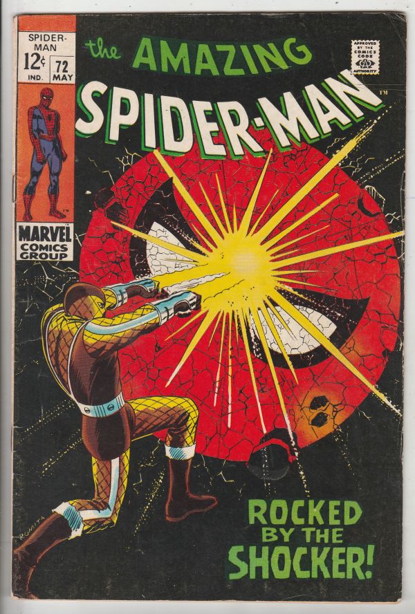 Amazing Spider-Man #72 - Rocked by the Shocker! APPEARANCE - The Shocker ARTIST - John Romita Snr Wow! This book has decent eye-appeal on this hard-to-get in high-grade black all-time-classic Shocker cover! There ... Read More