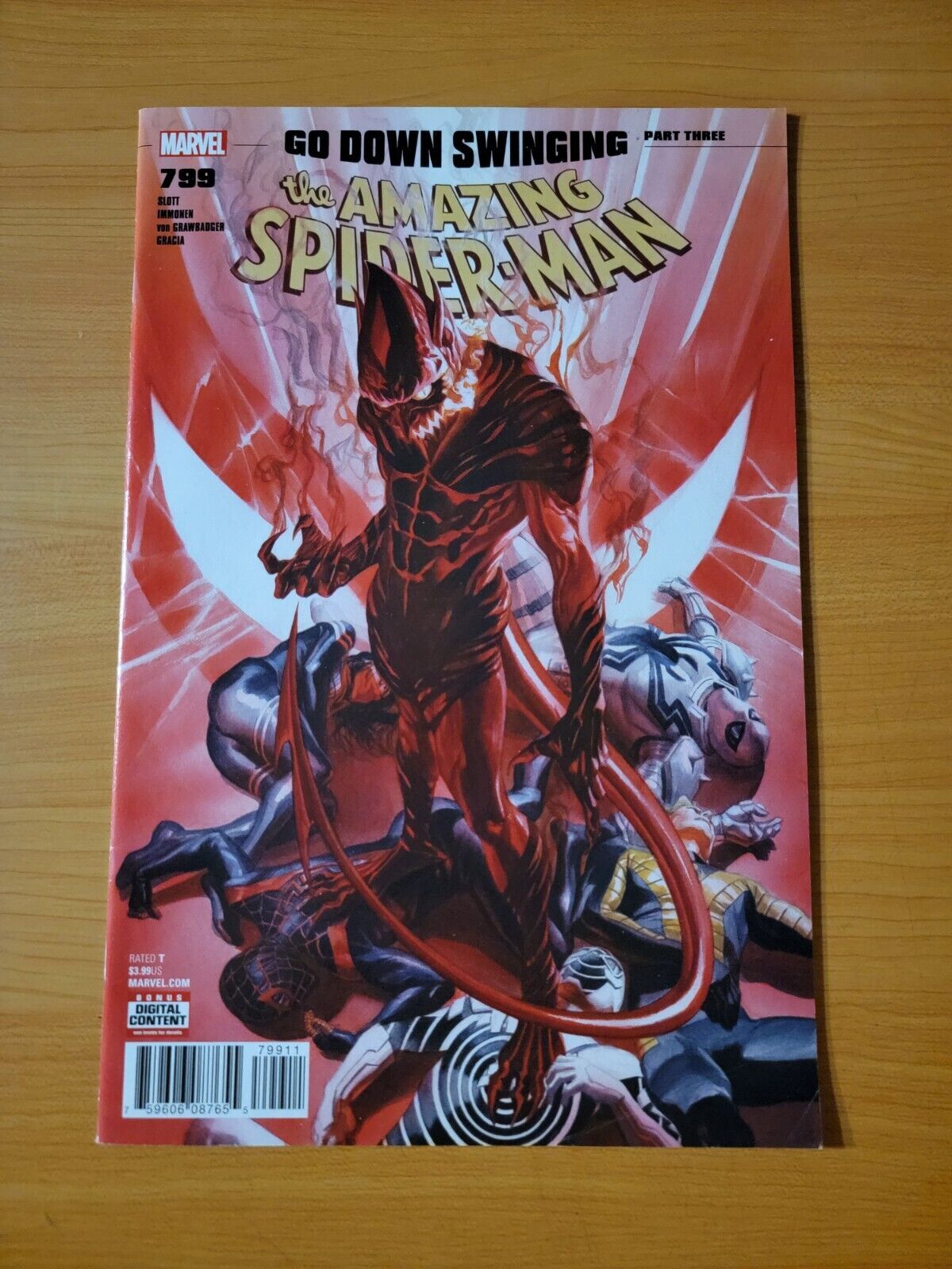 Item DescriptionAmazing Spider-Man #799Publisher: Marvel ComicsPublished: 2018Item Grade/ConditionGrade: NEAR MINTFor more information about this grade and other grades, please see our grading standards.~ WE TAKE HIGH DEFINITION PICTURES OF OUR COMICS ~ For more detail use the ZOOM Function and check them out yourself! ~Shipping Info:United States: Comic Book & Magazine Orders of all sizes, big and small ship for a flat Single Shipping ChargeInternational: We use Calculated Shipping! ~ This insures that you get the LOWEST POSSIBLE COST! ~ Please give us one business day to calculate large orders! The Calculator for Hip is pretty bad for international, contact us if you are looking to order multiple books so we can help you make it work on the back end! As a courtesy to our customers, we insure all orders over 50$ US ~ YOU DONT PAY EXTRA!Delivery TimeWe process and ship all orders within 1 business days. Once shipped, estimated U.S. transit time is 2-10 business days; international 14-21 business days.(Orders placed on Friday afternoon as well as weekends will be shipped the next business day as we do not ship on the weekends).PackingOmnomax Traders has mastered packing to ensure our orders of a "damage-free transport."Using the following methods, we have seen a nearly perfect 99% success rate for undamaged comics!Here is how our orders ship:All Orders :Bagged AND Boarded, ALWAYS NO EXCEPTIONS!Shipped in a Gemini Comic Mailer OR Tightly secured between 4x stiff pieces of corrugated cardboard (double Sandwiched)Sealed on all 4 sides with strong packing tape (Items doesn't even wiggle).:*Now this method is nearly perfect! however we have seen damage happen to items ( only once or twice a year ) ~ this is often due to bad handling by the postal service. Always remember to contact us if this happens! we are committed to quality service!*Offers History
