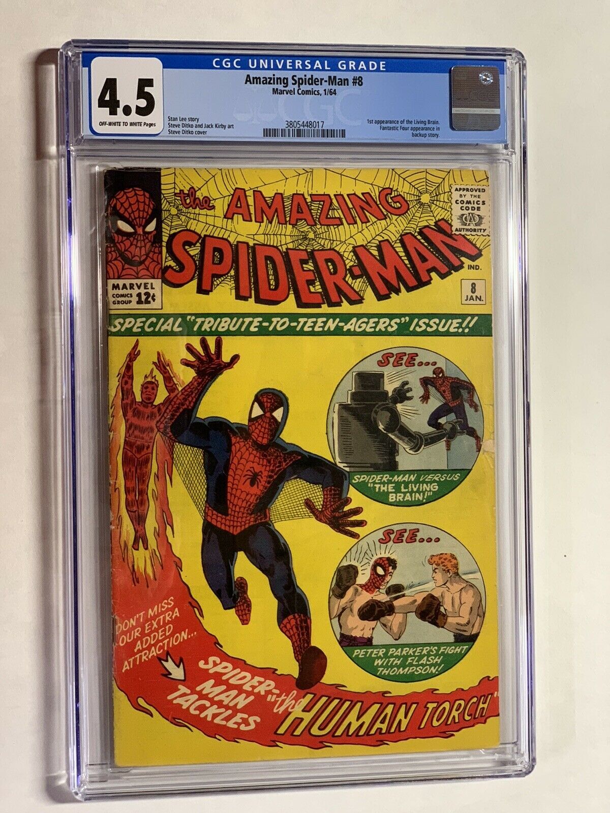Amazing Spider-man 8 Cgc 4.5 Ow/w Pages Marvel Silver Age. Shipped with USPS Priority Mail.Here at Cloud 9 Comics and More, the original since 2004, we strive for 5 stars positive feedback for every transaction. If we have not met this standard in any way contact us and we will make things right. That is a promise!
