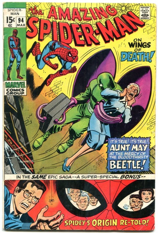 Grade: VG-Amazing Spider-man #94 1971-ORIGIN RETOLD-BEETLE appearance- VG- Origin retold. Centerfold loose. Grade: VG- SKU: U2-76-135