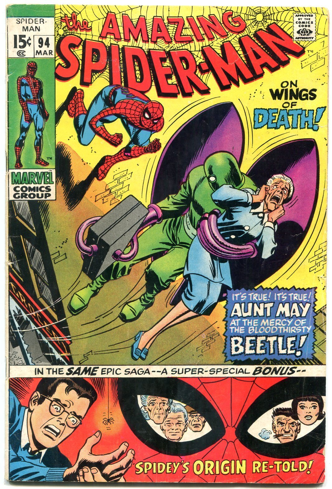 Grade: VG- Amazing Spider-man #94 1971-ORIGIN RETOLD-BEETLE appearance- VG- Origin retold. Centerfold loose. Grade: VG- SKU: U2-76-135