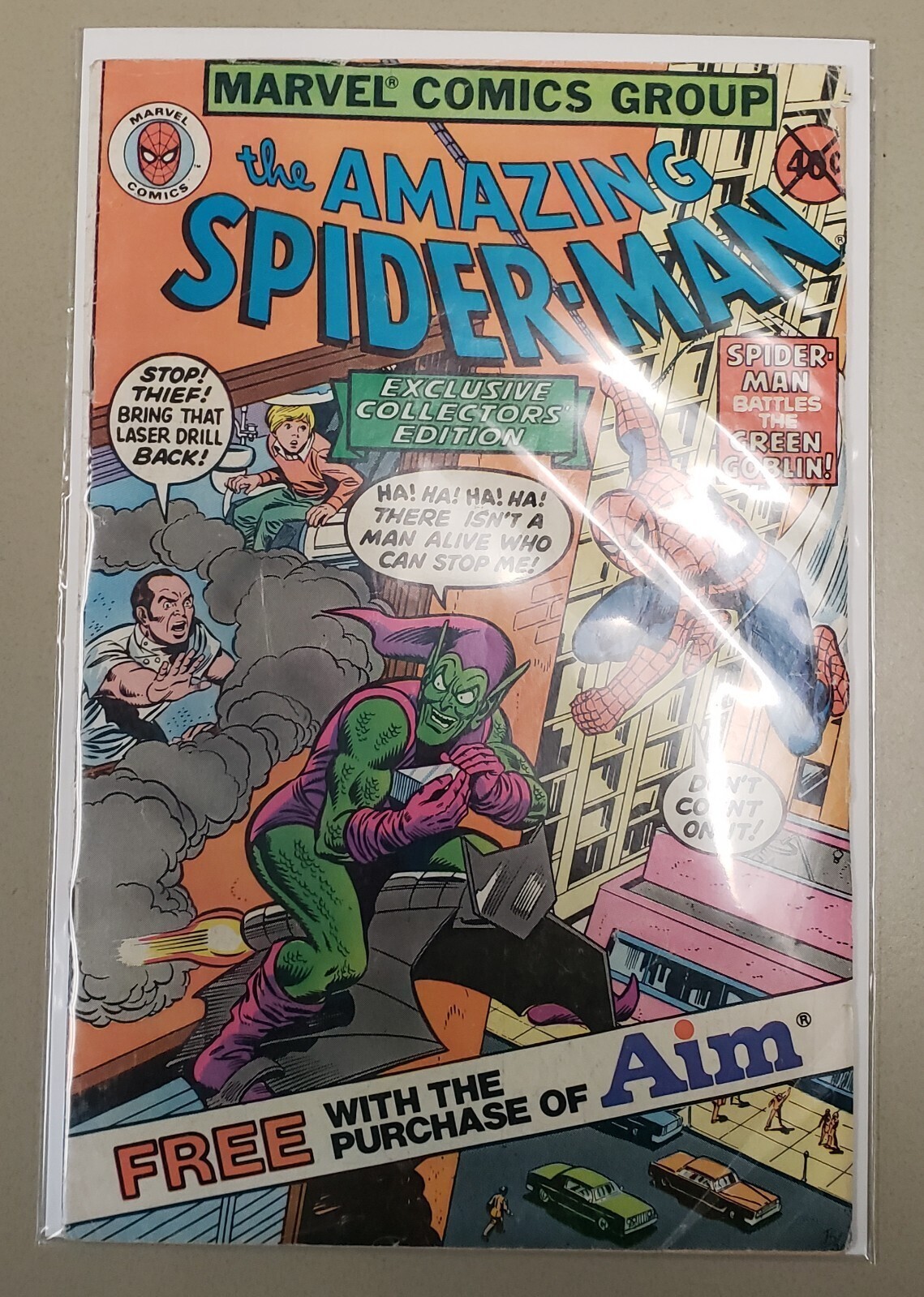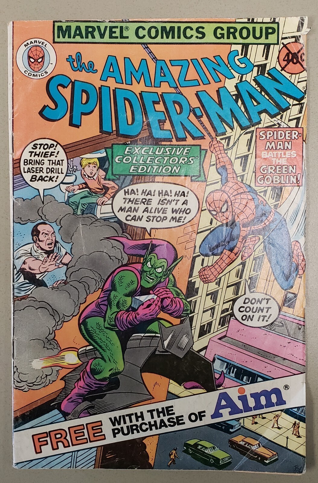 Amazing spider-man: aim toothpaste exclusive giveawaypublished in 1980by marvel comicsgood/very good condition. I am not a professional grader, so this grade is my opinion. Photos are shown to provide proof of areas of stress and concern with the condition of the comic. Additional photos may be presented upon request, however what is shown are the major areas of damage. Comic has stress lines along the spine, lots of spine ticks as well. Staples are intact and look good. Cover and page bends on the lower right corner. Cracks and minor tears on both front and back covers. Additional cover bend on the top right corner of the front cover. Front cover has some color breaks from stresses on the cover. Interior pages look good, with some typical browning due to the age of the comic. Some interior pages have bends, but look good.Shipping and handling: domestic - usps ground advantage - $6.99international shipping available through Hip's international shipping hub!All comics are shipped secured in either gemini comic book mailer or a hard "stay" flat envelope. I work every day, so please allow up to 3 business days for me to ship your purchase. Please note that weekends and holidays do not count as business days.