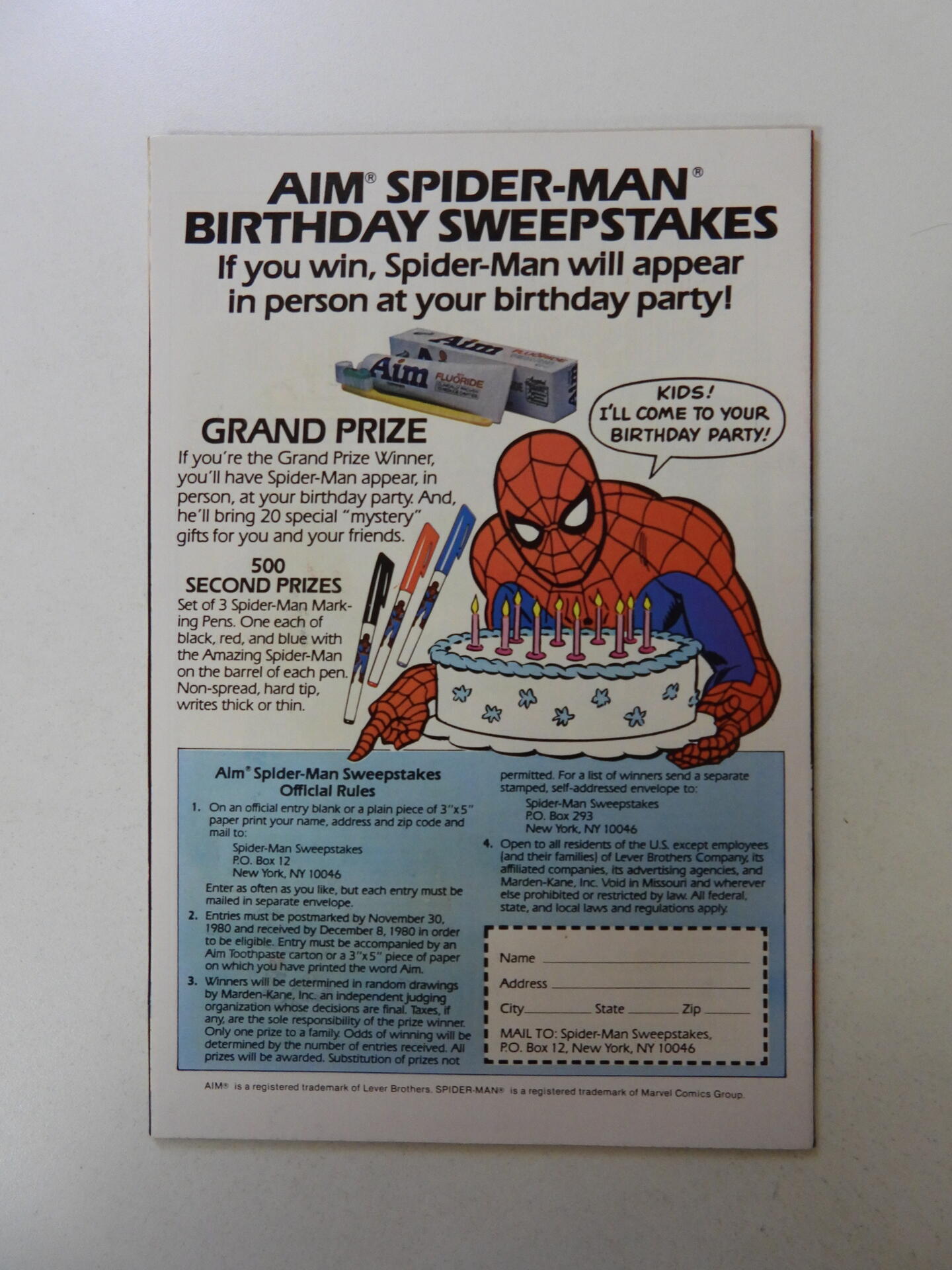 Amazing Spider-Man AIM Toothpaste Giveaway VF condition