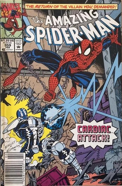 Item: Amazing Spider-Man, The #359 (Newsstand) | Publisher: Marvel | Cover Date: February 1992 | Writer: David Michelinie | Artist: Chris Marrinan | Cover Artist: Mark Bagley | Appearances: Spider-Man, Cardiac, Clet ... Read More