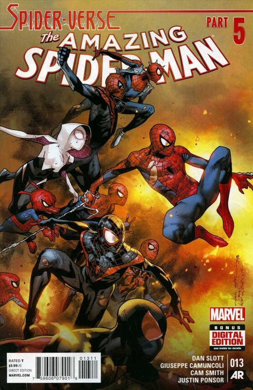 Item: Amazing Spider-Man, The (3rd Series) #13 Publisher: Marvel Cover Date: March 2015 Cover Artist: Olivier Coipel Writer: Dan Slott Artist: Giuseppe Camuncoli Appearances: Storylines: Spider-Verse, Part 5 ... Read More
