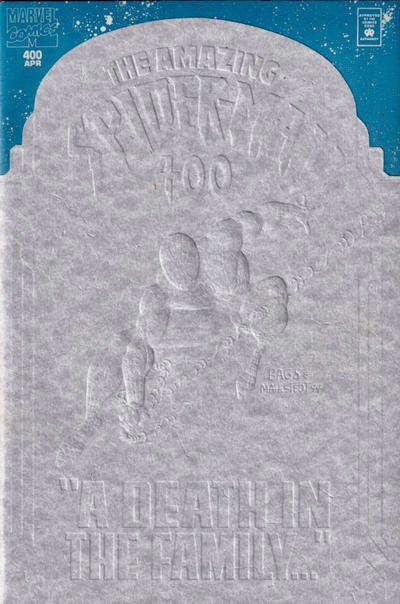 Item: Amazing Spider-Man, The #400 (Newsstand) | Publisher: Marvel | Cover Date: April 1995 | Writer: J.M. DeMatteis, Stan Lee | Artist: Mark Bagley, John Romita Jr., Tom Grummett | Cover Artist: Mark Bagley | Appearances: Aunt May, Aunt May (fake death) | Storylines: The Gift; The Parker Legacy, Part 1; A Shock to the System; The Morning After | Notes: Death of Aunt May (fake death) | With Economy shipping, each additional comic ships for just 50 cents more to customers in the USA. This listing contains a stock photo and information from ComicBase™ and © Human Computing. The stock photo is for reference only. If you would like to see a photo of the actual item, please message us prior to purchasing.Seller Information