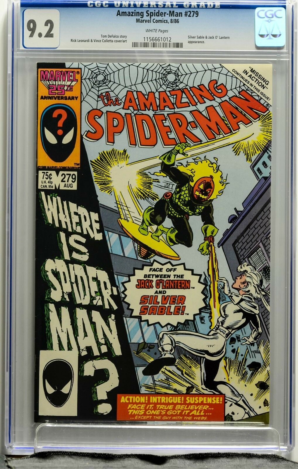 Amazing Spider-man Vol #1 Issue # 279 CGC 9.2 Marvel Silver Sable Jack-o-Lantern