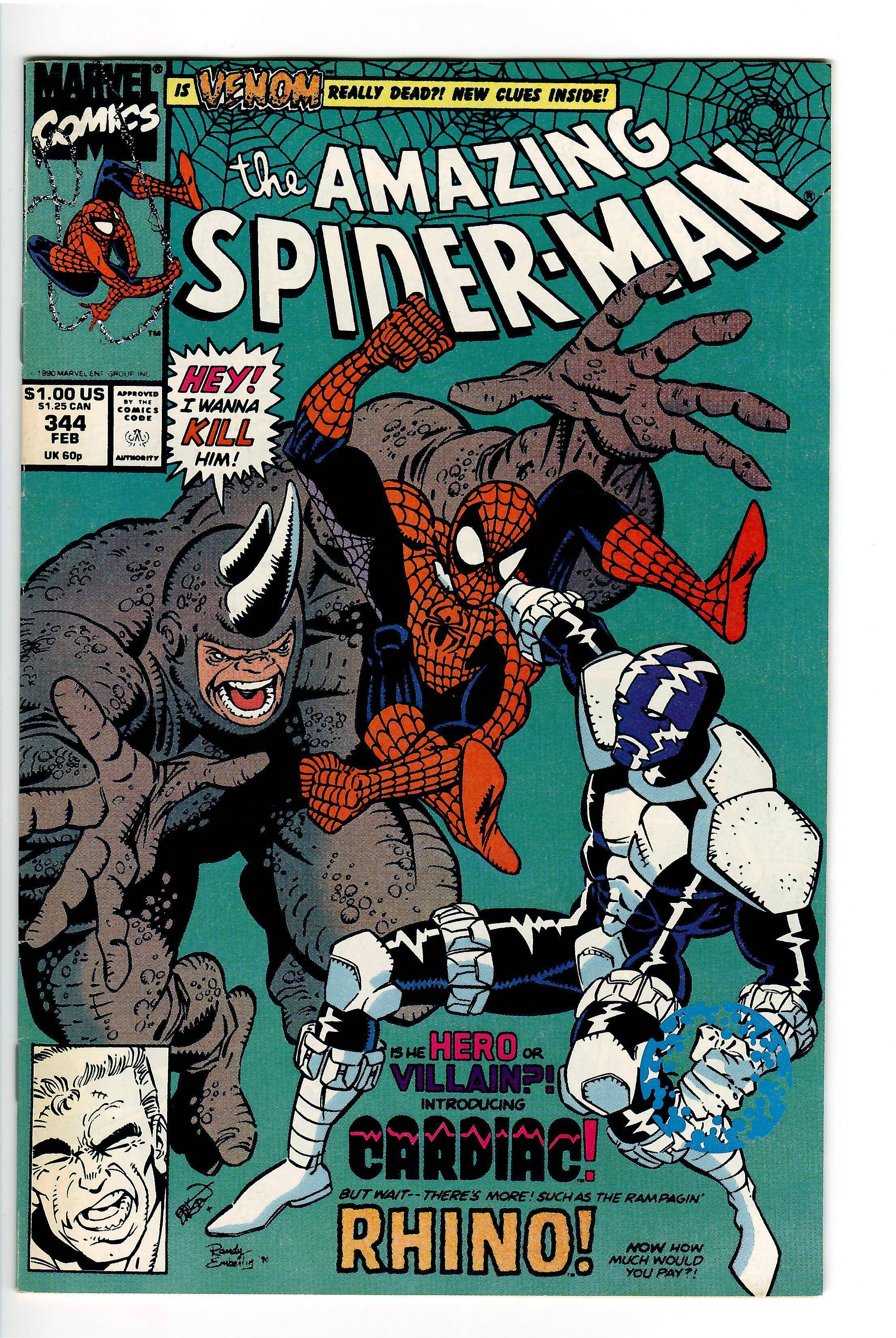 AMAZING SPIDERMAN 344 VF/NM;1st APP CLETUS CASSIDY(CARNAGE).;1st APP. CARDIAC!!!