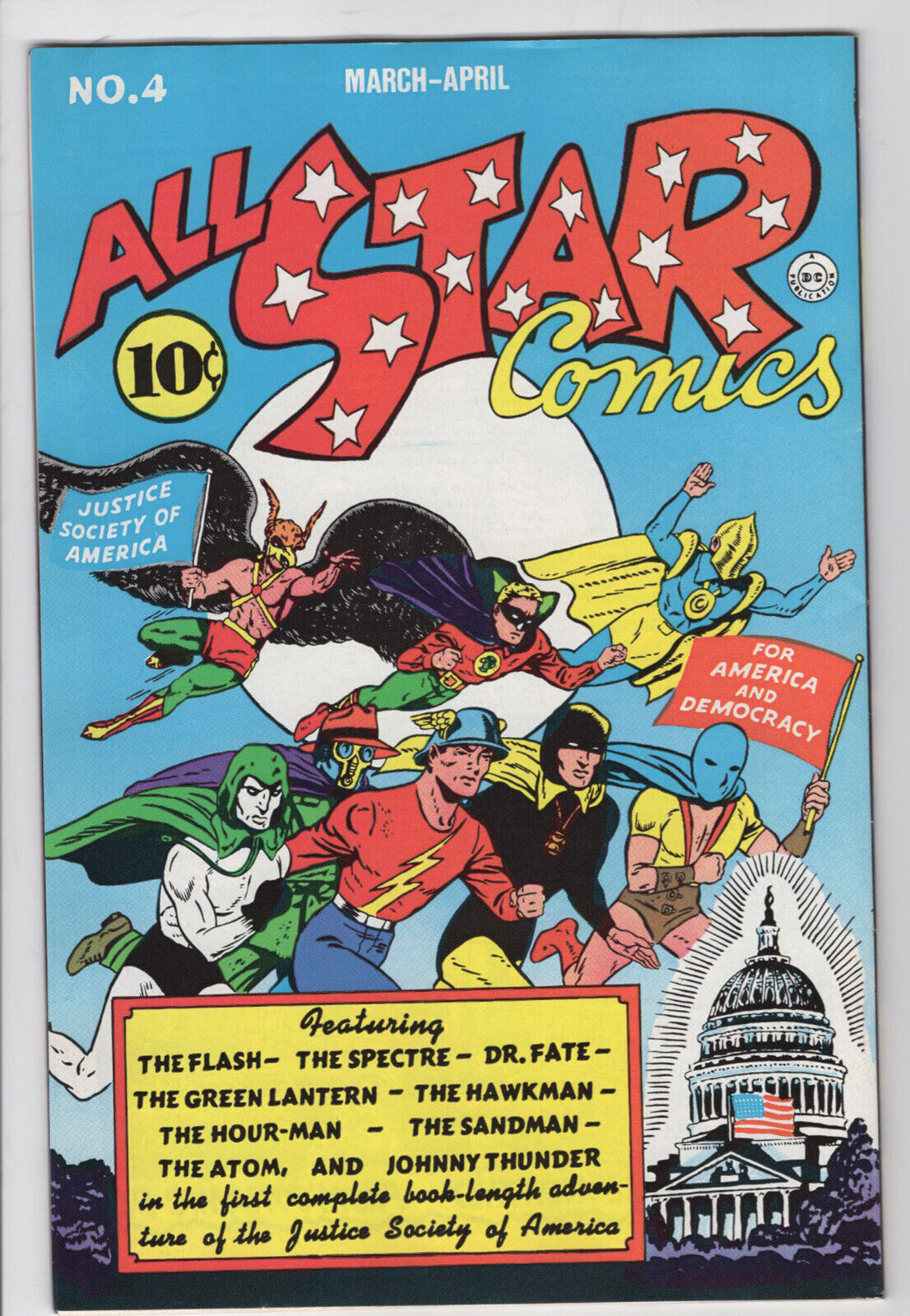 AMERICA VS THE JUSTICE SOCIETY #1 - 5.0 - WP - Alcala - Double SizeDESCRIPTION:This very attractive unrestored copy is complete, fully readable and has both covers attached. The book has very high cover gloss, a very tight spine and white pages. This book features the Justice Society, is double sized and Alfredo Alcala art. The book is sent in a mylar sleeve with a backing board. Condition is a very conservatively graded 5.0, VG-FN.SHIPPING INFORMATION:Combine our auctions and $ave on shipping!Please remember that Media Rate may take up to 4 weeks delivery.FEDEX services available.Nevada residents, please add sales tax.We accept PayPal, MasterCard, Visa, Discover, American Express.NOTES AND FINE PRINT: Welcome to Redbeard's Book Den! For most that have collected comic books for the last 30 years, you have probably heard of us. Redbeard's founder and current owner is Ron Pussell (aka Redbeard), senior Overstreet Price Guide consultant since 1980.REDBEARD'S BOOK DENPO Box 217Crystal Bay, NV 89402-0217y _gsrx_vers_1318 (GS 8.4 (1318))