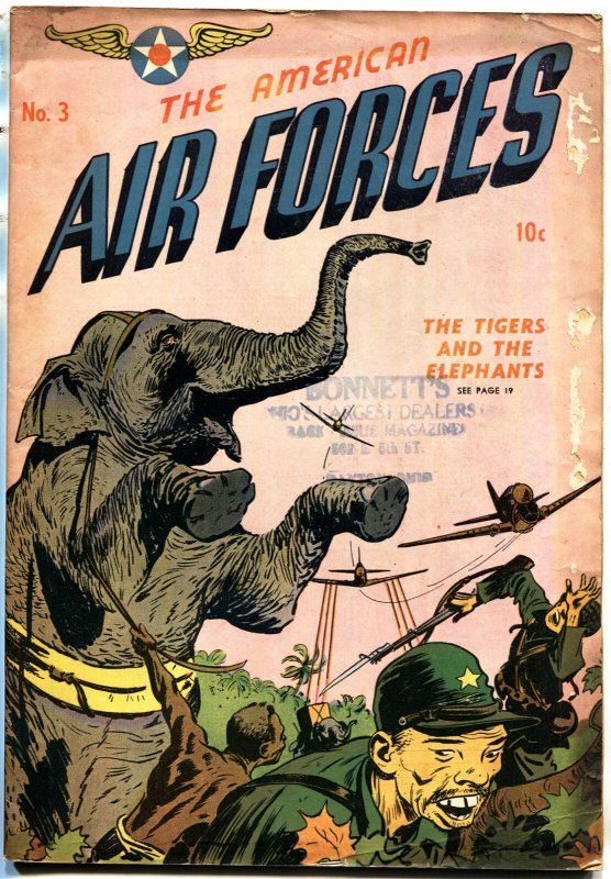 American Air Forces #3 -- 1944 -- Japanese WWII--COMIC BOOK WWII japanese elephant attack cover. Has some holes in cover. TITLE: American Air Forces ISSUE: 3 GRADE: G SKU: VE-10-234Seller Information