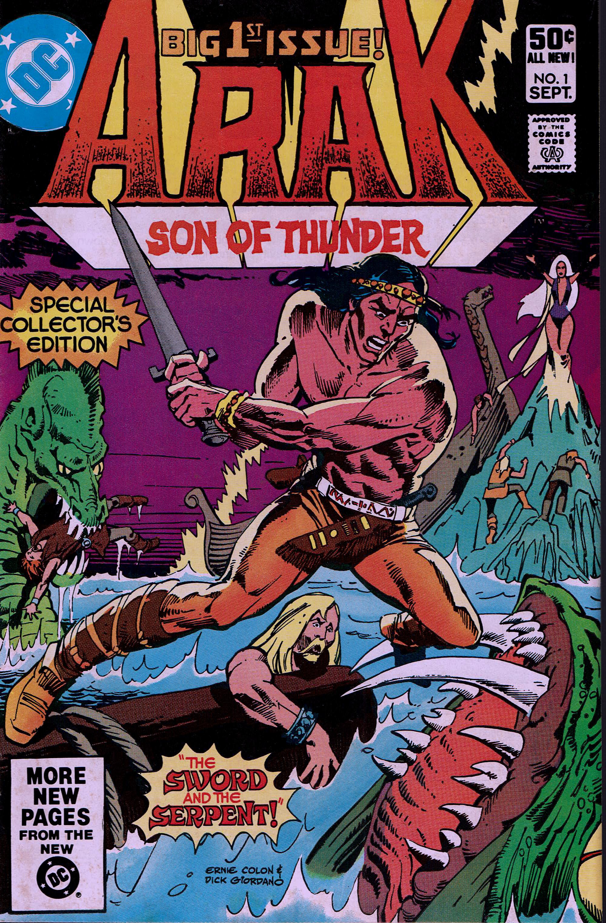 Please see picture for condition. Premiere issue of sword and sorcery adventures with Arak, an Indian exploring Europe during the dark ages. The issue features "The Sword and the Serpent!" in which Arak is introduced and begins his adventures. Story also introduces Angelica, a sorceress who would battle Arak throughout the series. Script by Roy Thomas and art by Ernie Colon and Tony DeZuniga. Cover price $0.50.
