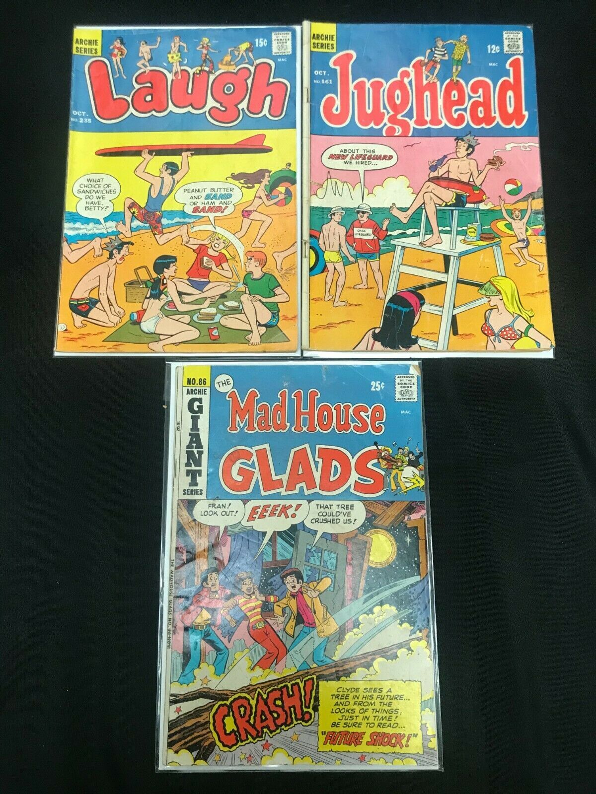 ARCHIE 3PC LOT (VG) JUGHEAD!! MAD HOUSE GLADS!! 1968-72