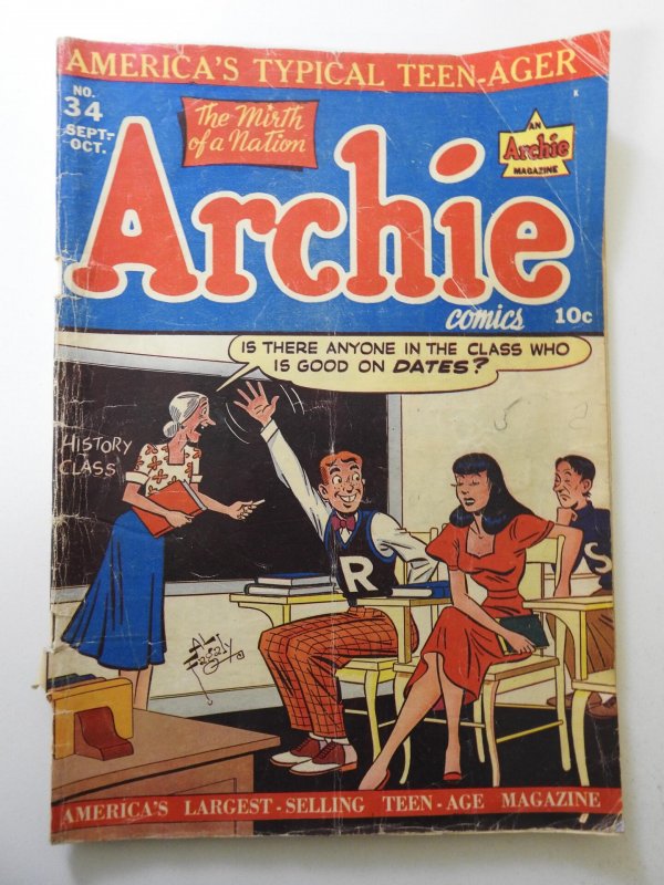 Archie Comics #34 (1948) FR Condition 2 in spine split, coupon cut