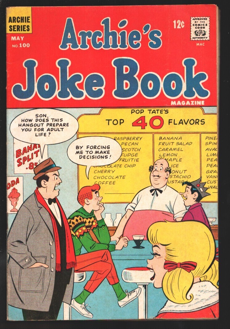 Grade: FNArchie's Joke Book #100 1966-Soda shop-ice cream cover-Special 100th issue-Betty and Veronica appear-FN -Soda shop-ice cream cover -Special 100th issue -Betty and Veronica appear -Higher grade Grade: FN SKU: EC-04-050