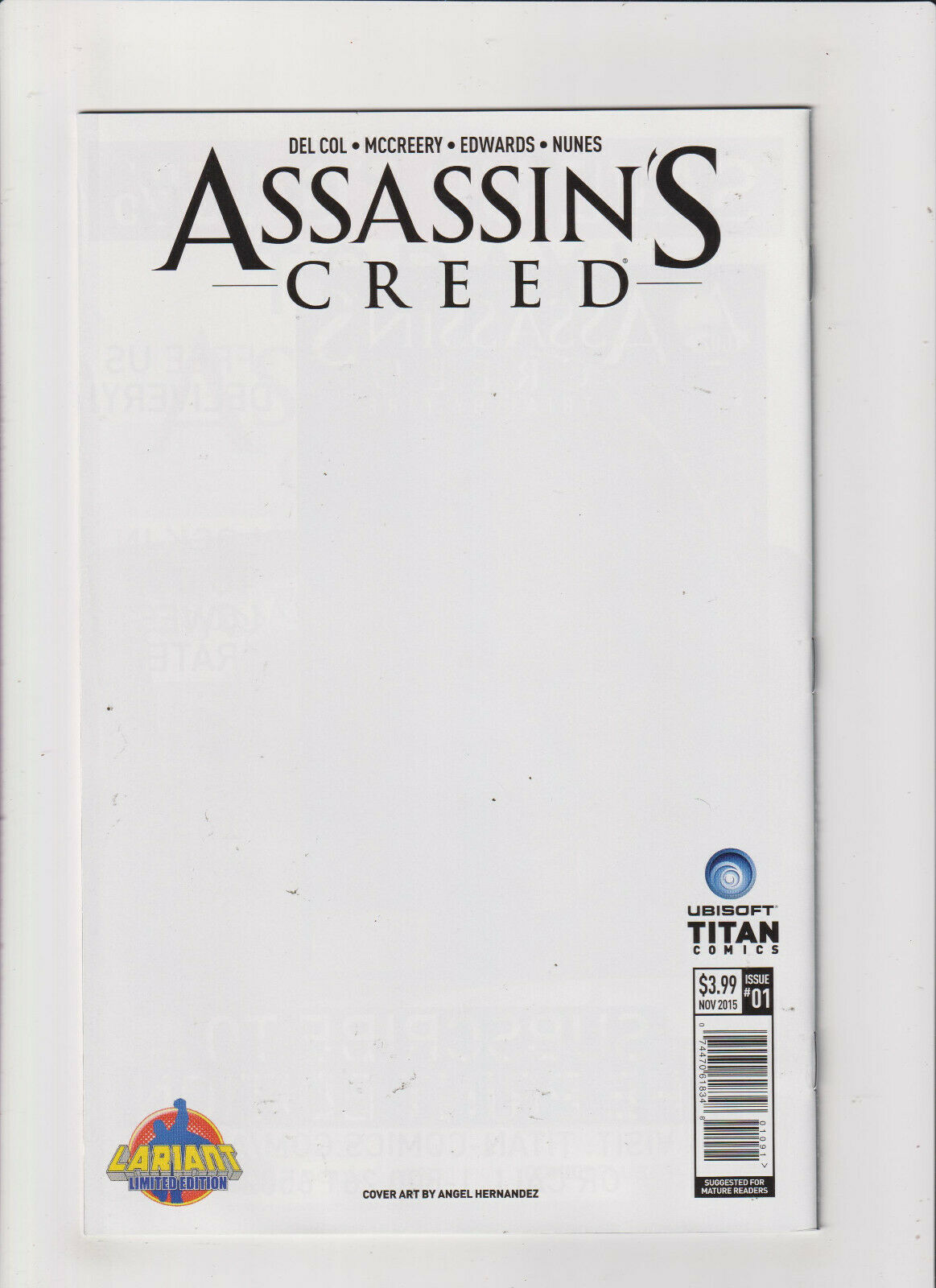 Assassin's Creed #1 NM- 9.2 Titan Comics Action Figure Variant 2015 Ubisoft