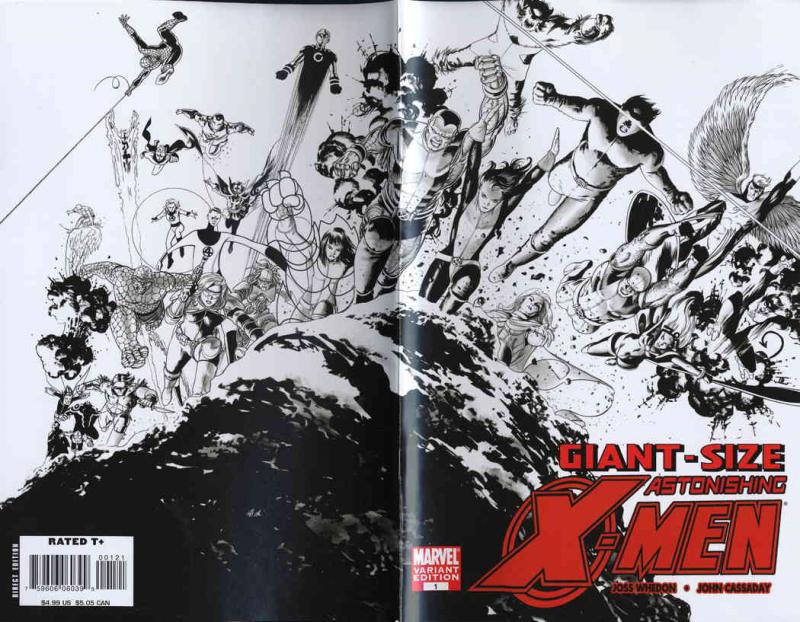 Item: Astonishing X-Men (3rd Series) Giant-Size #1A | Publisher: Marvel | Cover Date: July 2008 | Writer: Joss Whedon | Artist: John Cassaday | Cover Artist: John Cassaday | Appearances: Spider-Man, Fanastic Four, Iron Man (Tony Stark), Sentry, Dr. Strange, Iceman, Nightcrawler, Storm, Angel, Cannonball, Warpath | Notes: B&W Variant Cover; Includes Cover Gallery | With Economy shipping, each additional comic ships for just 50 cents more to customers in the USA. This listing contains a stock photo and information from ComicBase™ and © Human Computing. The stock photo is for reference only. If you would like to see a photo of the actual item, please message us prior to purchasing.Seller Information