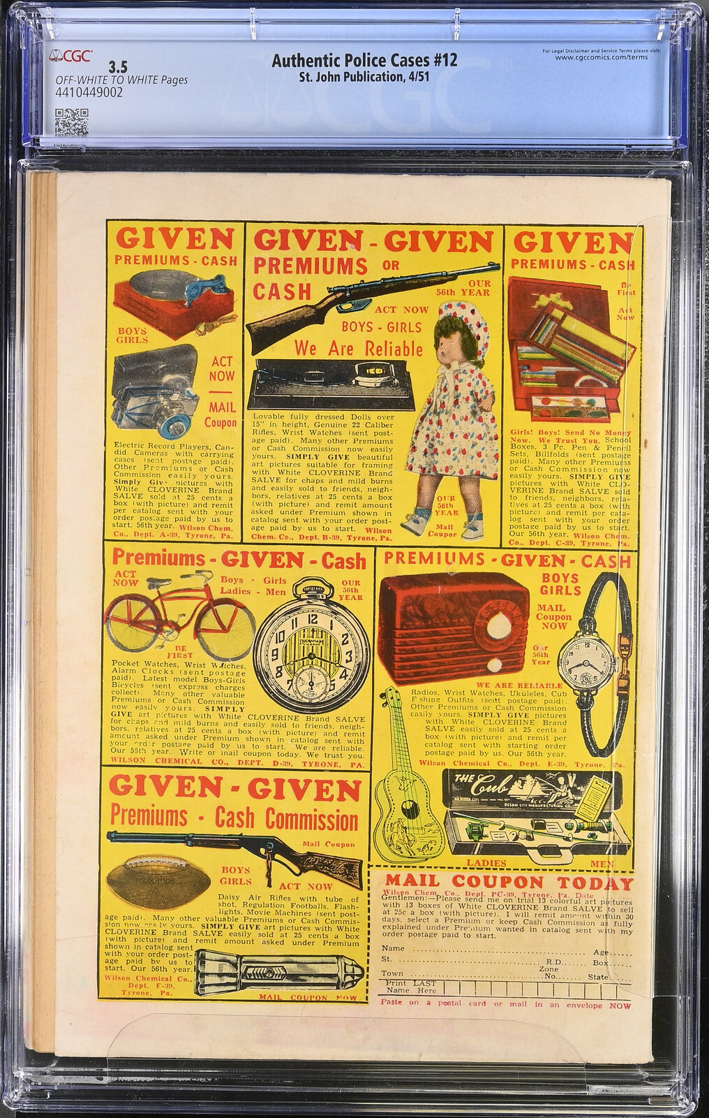 Grade: 3.5 Very Good- Authentic Police Cases #12 St. John Publications Estimated Grade/Condition: CGC 3.5 Very Good-. (Used) Notes: Matt Baker Grades given on raw comics are estimates. We cannot guarantee that a gr ... Read More