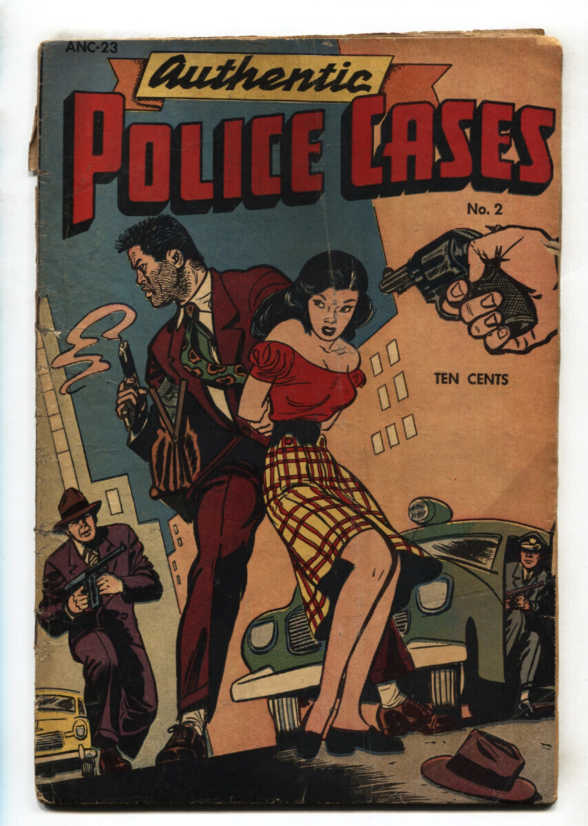 Grade: GAuthentic Police Cases #2 1948-Rare crime comic book-Golden-Age Gus Ricca, Bob Fujitani and, George Tuska art, Nick Cardy cover . Rare crime comic. Centerfold loose, tears at spine. Complete, no restoration. Grade: G SKU: DHV-12-356