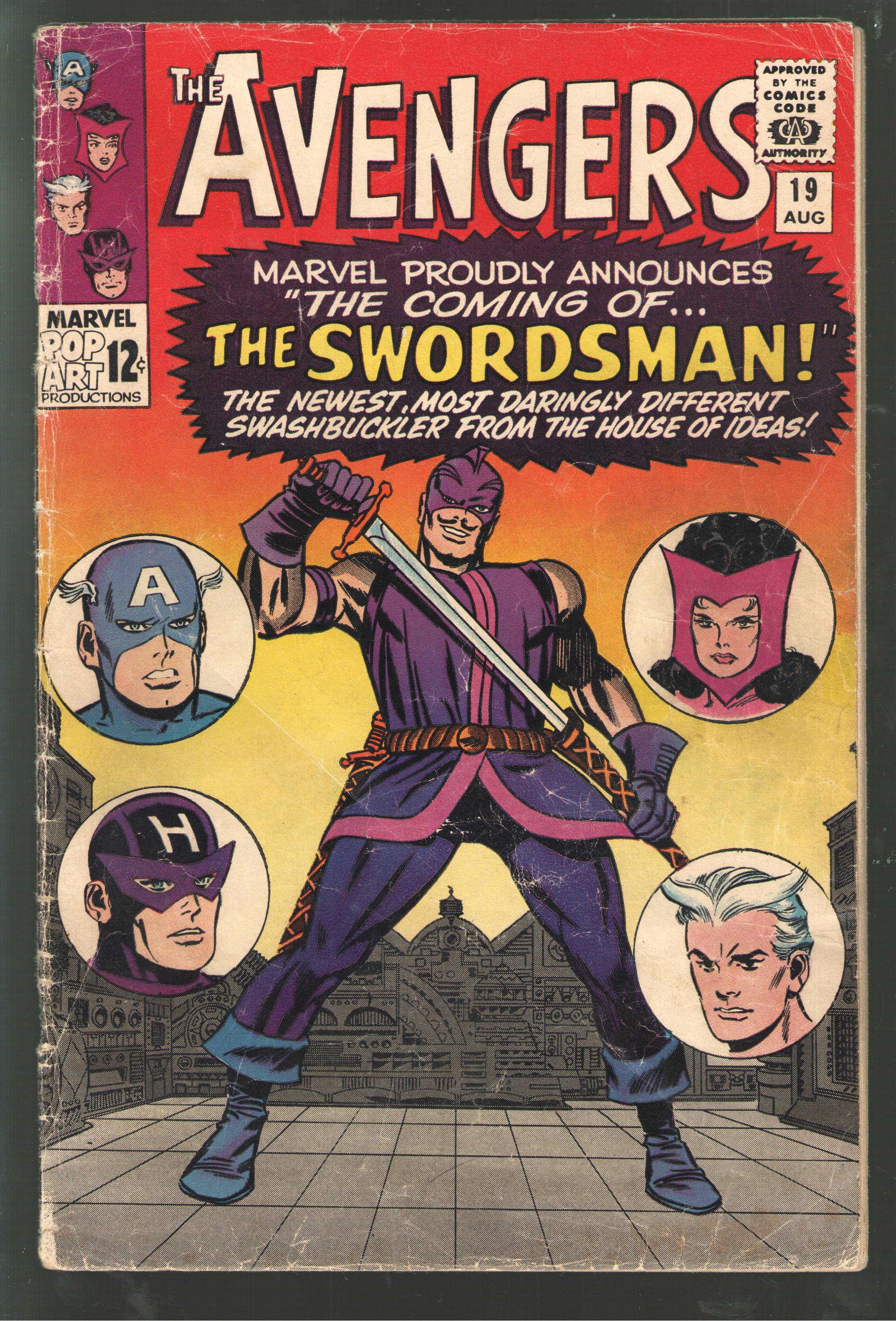 Origin of Hawkeye;1st appearance of Swordsman - the Swordsman is confirmed to appear in the Hawkeye Disney+ series played by actor Tony Dalton.Solid lower grade copy.VG- 3.5.Complete with supple off white pages.
