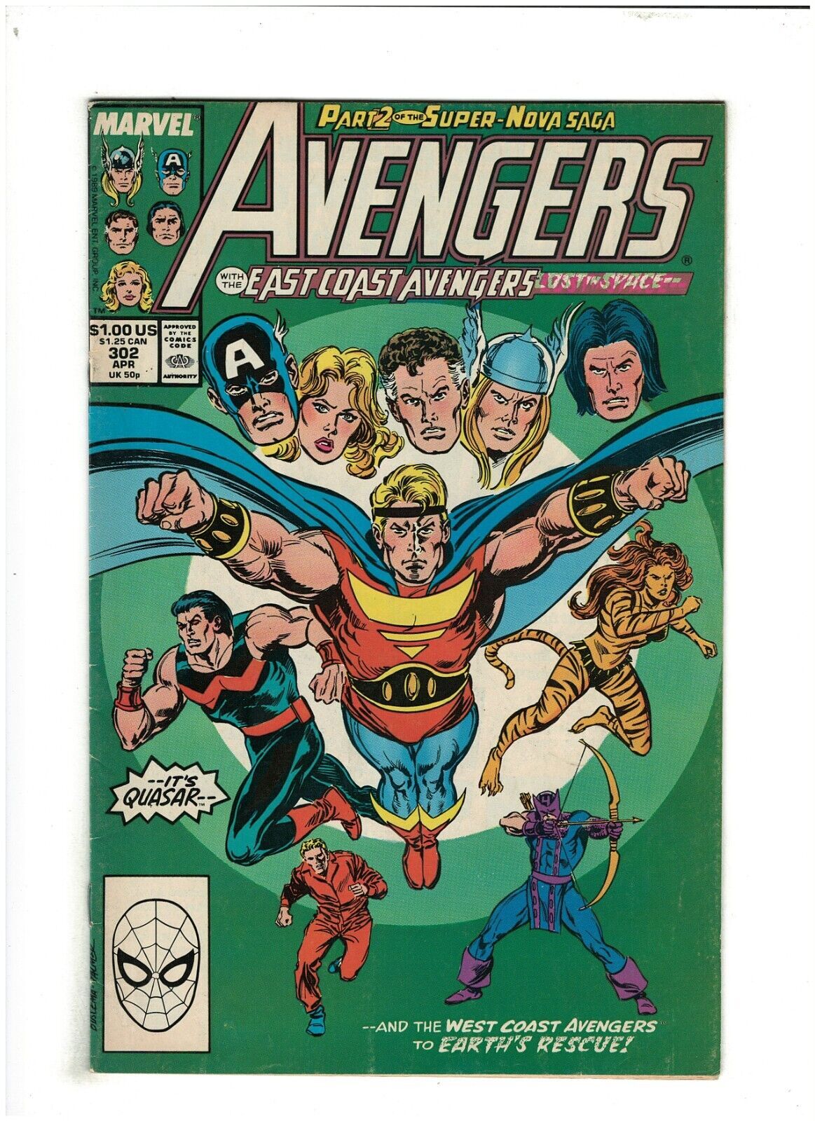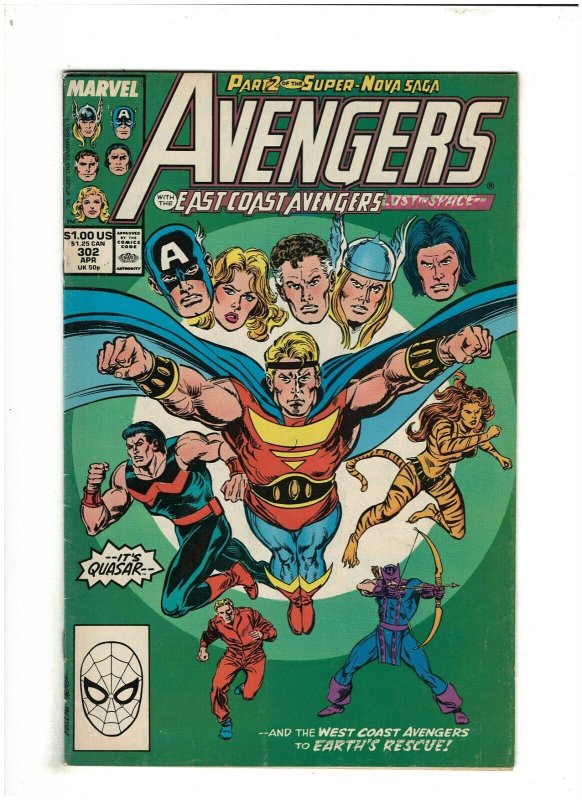 Avengers #302 VG/FN Marvel Comics 1989 East Coast Avengers, Quasar & Nova