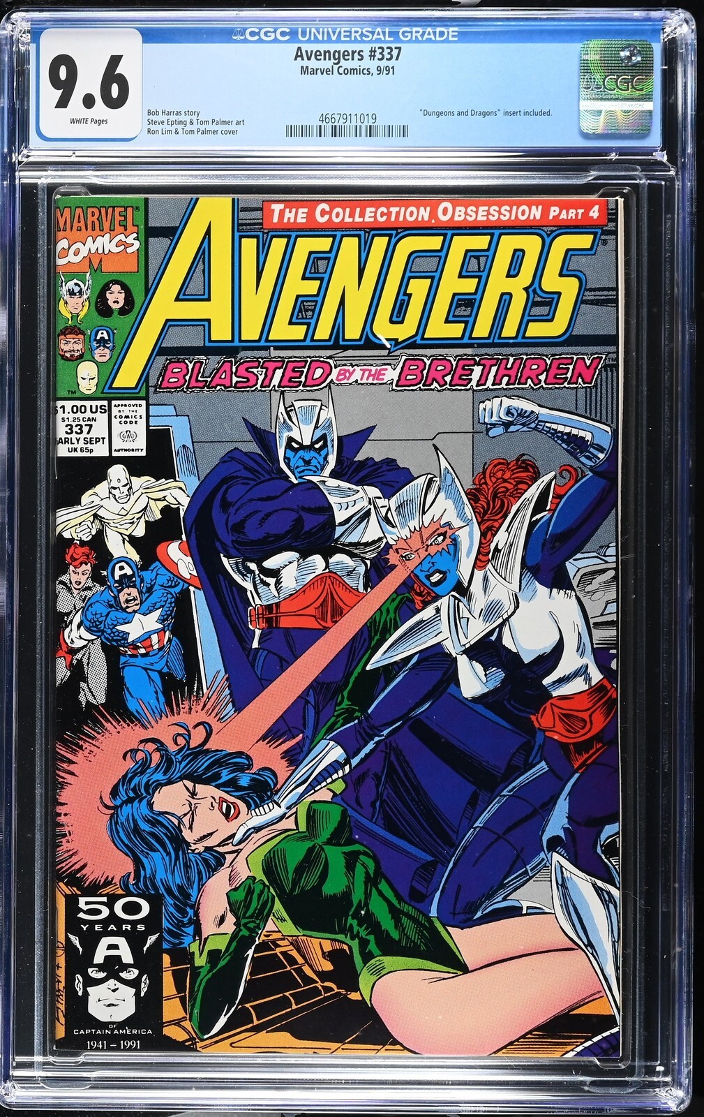 Avengers #337 from 9/91 offers a glimpse into the era's iconic storytelling. Featuring "dungeons and dragons" insert included., this issue is a must-have for collectors. Add this CGC 9.6 graded comic to your collect ... Read More