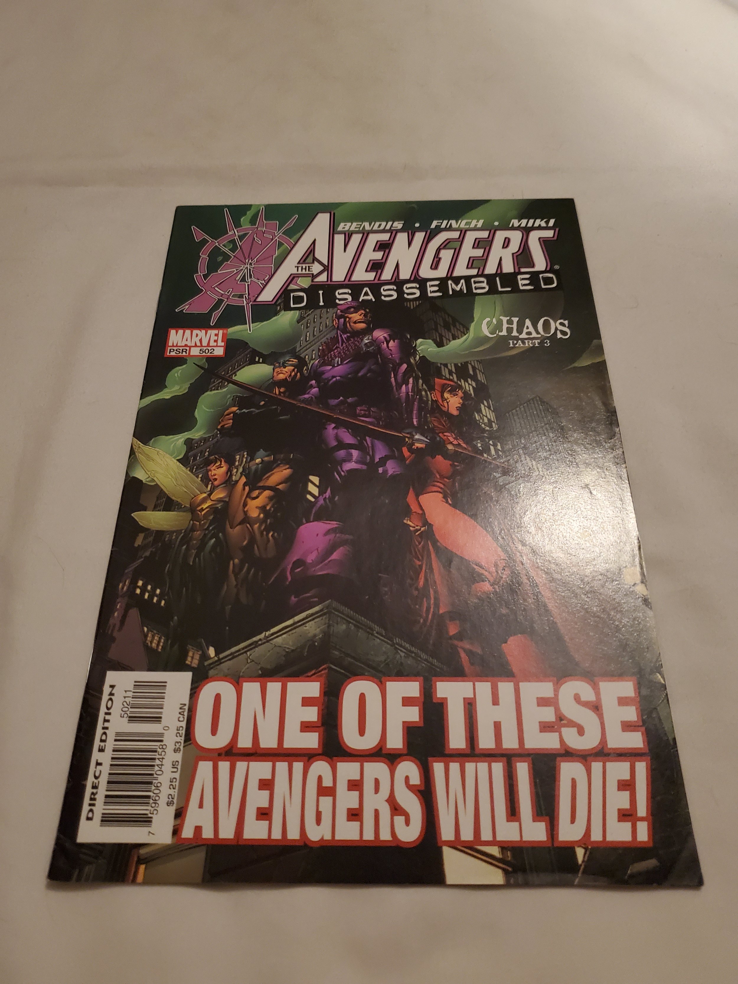 Written by Brian Michael Bendis Cover & Pencils by David Finch "AVENGERS DISASSEMBLED" PART 3 (OF 4) There's been a lot of buzz around this big Avengers event and this issue is what everyone is waiting for. Who will fall at the hands of the Avengers' greatest enemy? Guest-starring: every Avenger in the history of the Avengers! 32 PGS./MARVEL PSR ...$2.25 UPC: 5960604458-50211 Cover price $2.25.Seller Information