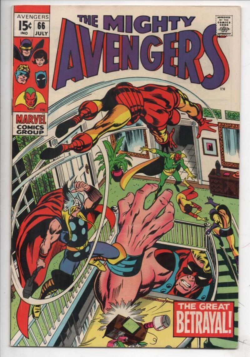 AVENGERS #66, FN+ Iron Man, Thor, Vision, Ultron Adamantium, 1963 1969 AVENGERS #66... Name of Comic(s)/Title?: AVENGERS #66... Publisher: Marvel Comics...... Art by/Featuring/Stories?: Featuring a comic called AVENGERS...Artist(s): Barry Smith...Writer(s): Roy Thomas....Front Cover: ?.....Rated : PG13+...Story(s): "Betrayal"......Avengers roster : Captain America, Iron Man, Thor, Goliath, & Vision... Grade of item? : This issue is in FINE+ condition.... Created when? : 1963 series, made in 19689... Front Cover description : Great cover gloss, with light handling and spine wear, with light corner bumps, and a line across the cover... Back Cover description : Great cover gloss, with some handling and spine wear, with a torn bottom left corner... Page quality description : All intact, with off-white to white color... Tape or writing?: No... How are staples?: Staples are secure.... Flat & supple : Yes.... Don't get caught napping...Will come bagged & boarded... 1st Printing... ...Lots more MARVEL, AVENGERS, CAPTAIN AMERICA, BARRY SMITH, & SILVER AGE items in our store. Be sure to check out all of our current on-going auctions! Lots of great product at affordable prices! Bookmark our listings with (control + D). Lots more coming in the next few weeks... Check out the scan(s). If you like this? Our store name is HighQualityComics...aka HQComics... We have been doing mail-order since 1988. We guarantee Absolute Satisfaction on All Orders! Shipping in a box. Combine auctions to save on postage. INTERNATIONAL CUSTOMERS : Email us for international shipping rates & acceptable ways to pay. INTERNATIONAL CUSTOMERS : Email us for acceptable ways to pay and shipping options, before you place an order. Thanks!