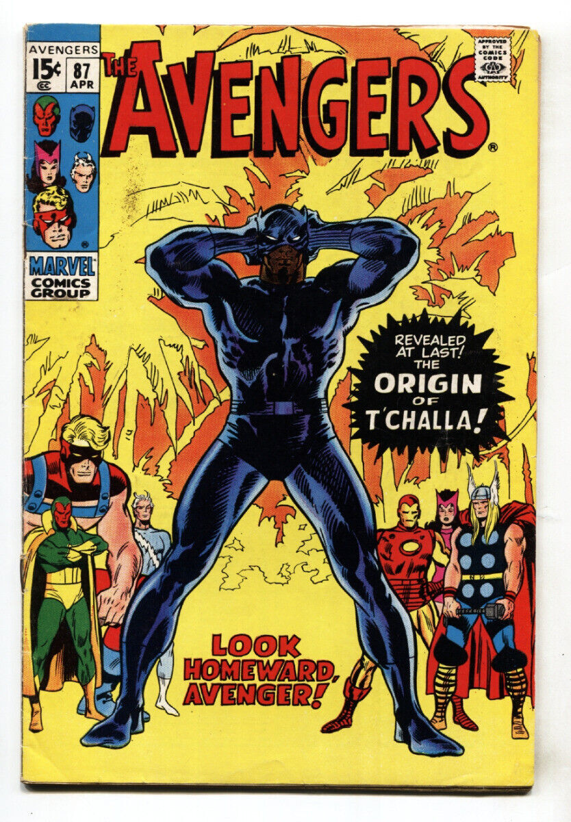 Avengers Issue: 87 / Year: 1971 Condition: VGOrigin of T'CHALLA appears in this issue. Publisher: MarvelSku: EB-13-068 Over 100,000 mail orders processed! Buy with confidence. Track Page Views WithAuctiva's Counter