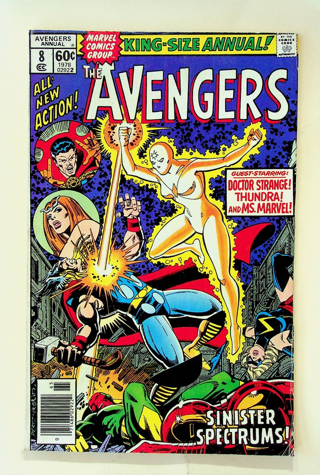 Grade: 4.5 Very Good+This is a comic of Avengers Annual #8 published by The Marvel Comic Group in Nov., 1977. The grade is probably at least a Very Good+ but I will leave that up to the buyer to determine from the scans.The pictures are of the actual copy being auctioned. The pages are complete and intact. The comic book has been stored bagged and boarded in a climate controlled environment in a smoke free home.If you would like more information, please feel free to ask. Please check out our other listings for more interesting items. I combine shipping whenever possible. All items are well packed and sent by USPS Ground Advantage Mail.