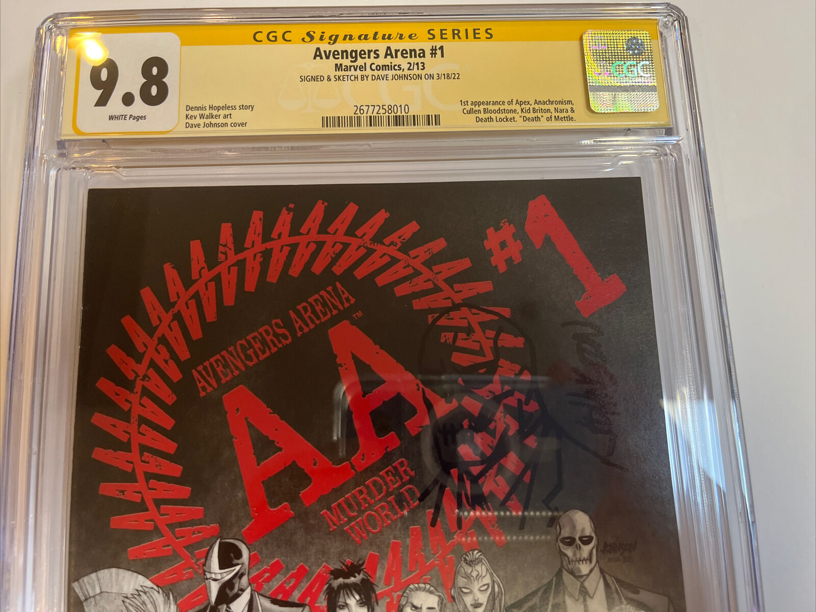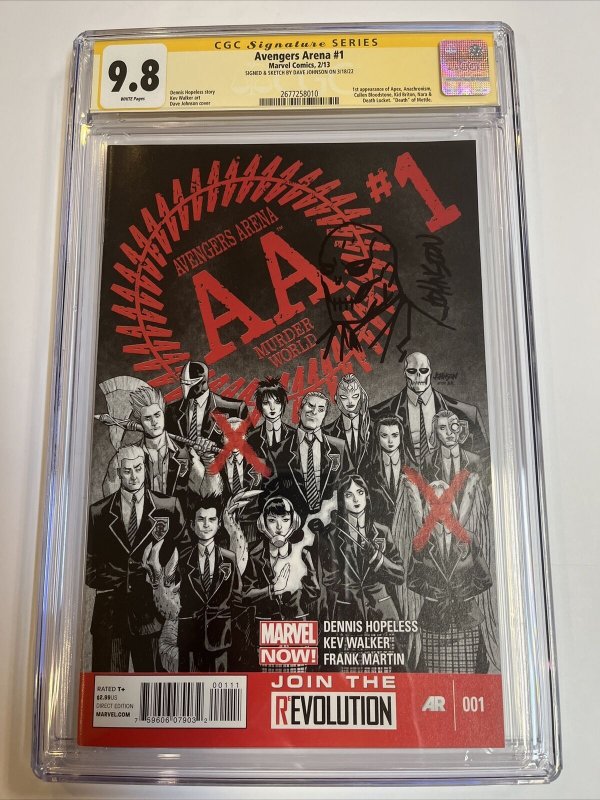 Avengers Arena (2013) # 1 (CGC 9.8 SS) Signed & Sketch Dave Johnson | 1st App