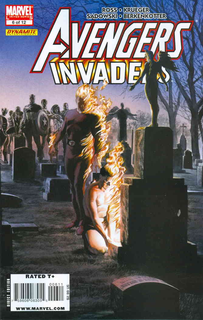 Item: Avengers/Invaders #6 | Publisher: Marvel | Cover Date: January 2009 | Writer: Alex Ross, Jim Krueger | Artist: Stephen Sadowski, Patrick Berkenkotter | Cover Artist: Alex Ross | Appearances: Bucky, Dr. Strange, Iron Fist, Wolverine, The Sentry, Ms. Marvel, Ares, Wonder Man, Human Torch (Jim Hammond), Wasp, Spider-Man, Toro, Captain America, Sub-Mariner | Storylines: Man on FIre | With Economy shipping, each additional comic ships for just 50 cents more to customers in the USA. This listing contains a stock photo and information from ComicBase™ and © Human Computing. The stock photo is for reference only. If you would like to see a photo of the actual item, please message us prior to purchasing.Seller Information