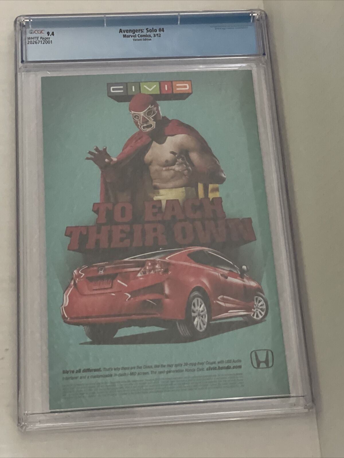 Avengers Solo 1:15 Movie Variant - CGC 9.4 Condition -I Charge Base Sales Taxes for Ca Purchases