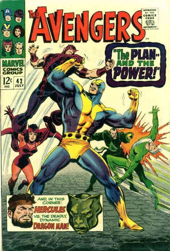 Item: Avengers, The #42 | Publisher: Marvel | Cover Date: July 1967 | Writer: Roy Thomas | Artist: John Buscema | Cover Artist: John Buscema | Appearances: Colonel Ling, Scarlet Witch, Hercules, Quicksilver, Hawkeye, Goliath, Captain America, Wasp, Diablo, Dragon Man, Mr. Fantastic (Reed Richards), Thing (Ben Grimm) | Storylines: The Plan—and the Power! | With Economy shipping, each additional comic ships for just 50 cents more to customers in the USA. This listing contains a stock photo and information from ComicBase™ and © Human Computing. The stock photo is for reference only. If you would like to see a photo of the actual item, please message us prior to purchasing.Seller Information