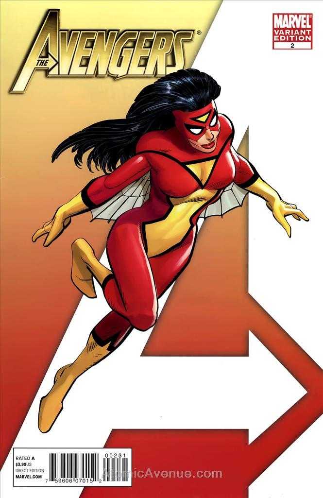 Item: Avengers (Vol. 4) #2A | Publisher: Marvel | Cover Date: August 2010 | Writer: Brian Michael Bendis | Artist: John Romita Jr., Eric Powell, Alex Ross, Arthur Adams | Cover Artist: John Romita Jr. | Appearances: Avengers, Captain America (James Barnes), Hawkeye (Clint Barton), Maria Hill, Iron Man (Tony Stark), Spider-Man (Peter Parker), Spider-Woman, Thor, Wolverine (Logan/James Howlett), American Dream, Freebooter, J2, Mainframe, Sabreclaw, Spider-Girl, Azari, Francis Barton, Henry Pym Jr., James Rogers, Torunn, Cable, Death's Head (Minion), Doom 2099, Firelord, Guardians of the Galaxy, Charlie-27, Nikki Gold, Major Victory, Martinex, Starhawk, Yondu, Immortus, Iron Man 2020, Edwin Jarvis, Killraven, Machine Man, Maestro, Magneto, Protector, Replica, Spider-Man 2099, Spirit of Vengeance, Stryfe, Titanium Man, Venom (May Parker), Wonder Man | Notes: Spider-Woman Variant by John Romita Jr. | With Economy shipping, each additional comic ships for just 50 cents more to customers in the USA. This listing contains a stock photo and information from ComicBase™ and © Human Computing. The stock photo is for reference only. If you would like to see a photo of the actual item, please message us prior to purchasing.Seller Information