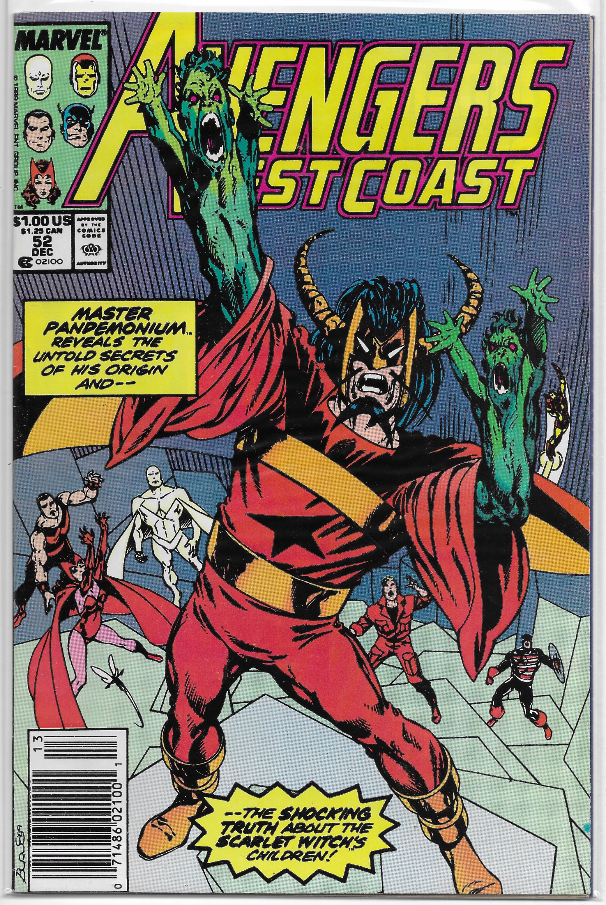 Avengers West Coast # 52 FN Byrne, Master Pandemonium, Scarlet Witch, Vision