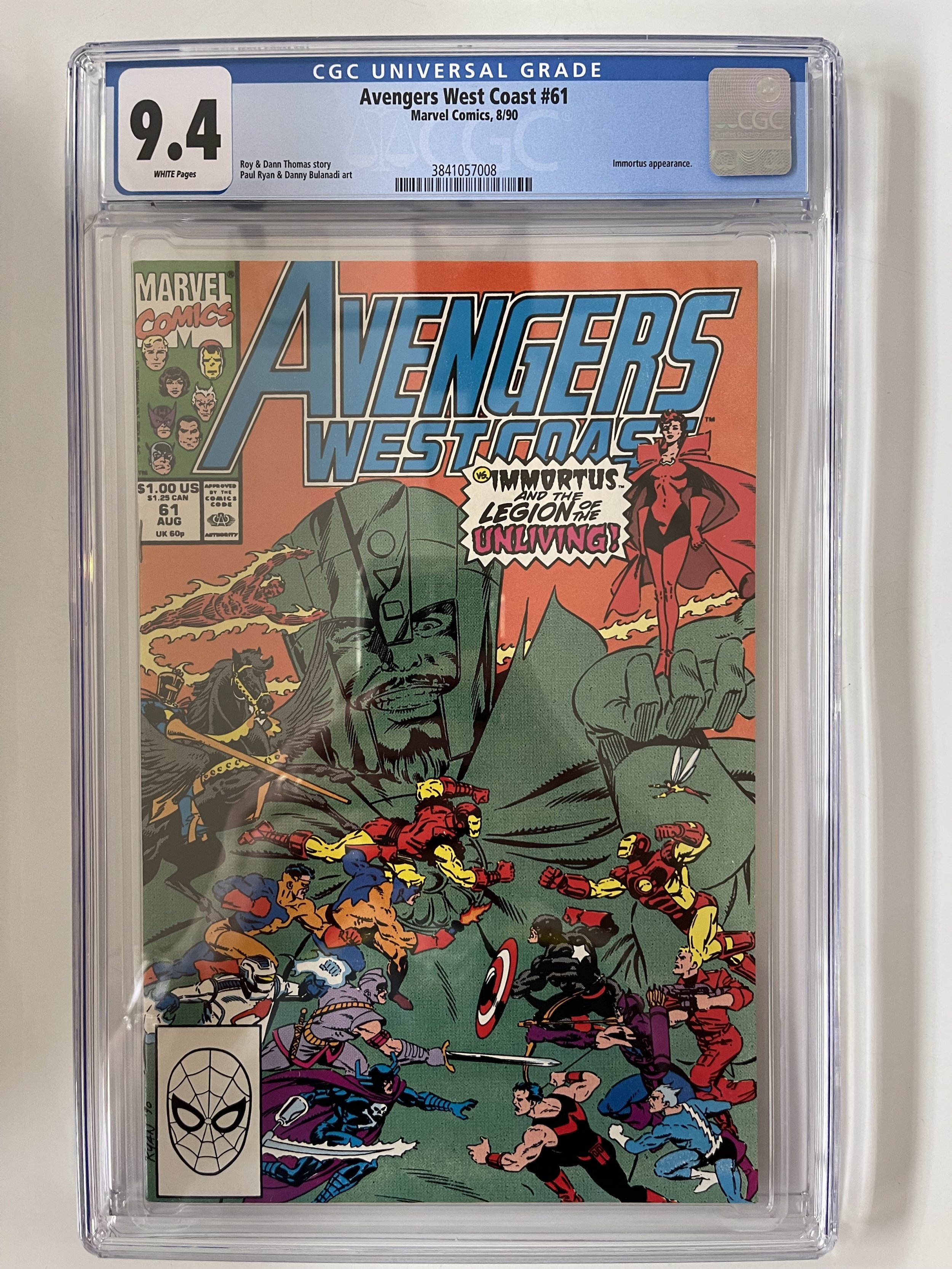 AVENGERS WEST COAST #61 Cameo Time Keepers Origin Kang (CGC 9.4) Beautiful KEYThe pictures above represent the exact item you are going to receive. They are NOT stock pictures. There are no missing pages, rips or cutouts.I am not a professional grader, so please use the pictures above to determine the grade for yourself. I have tried to grade as accurately as possible.