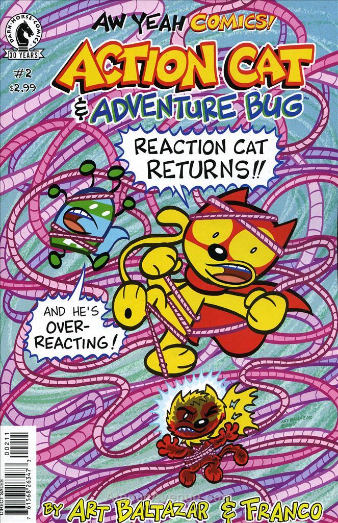 Item: Aw Yeah Comics: Action Cat! #2 | Publisher: Dark Horse | Cover Date: April 2016 | Writer: Art Baltazar | Artist: Art Baltazar | Cover Artist: Art Baltazar | Storylines: Over-Reaction Cat!, Part 1; Midnight Madness!; Lots O’Cream, Lots O’Sugar; Moon Napping | With Economy shipping, each additional comic ships for just 50 cents more to customers in the USA. This listing contains a stock photo and information from ComicBase™ and © Human Computing. The stock photo is for reference only. If you would like to see a photo of the actual item, please message us prior to purchasing.Seller Information