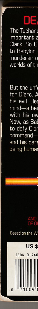 Based on the hit tv series by j. Michael stracynski ! Novel is in good condition - cracks, creases, and tears in front and back of spine and cover. Pages and cover are still intact. Pages are faded.Taking place during the 3rd season, president clark orders the execution of an alien who committed murder while on the station
