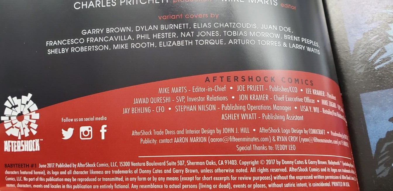 BABYTEETH #1 Aftershock Donny Cates Exclusive Variant Francavilla Cover NM