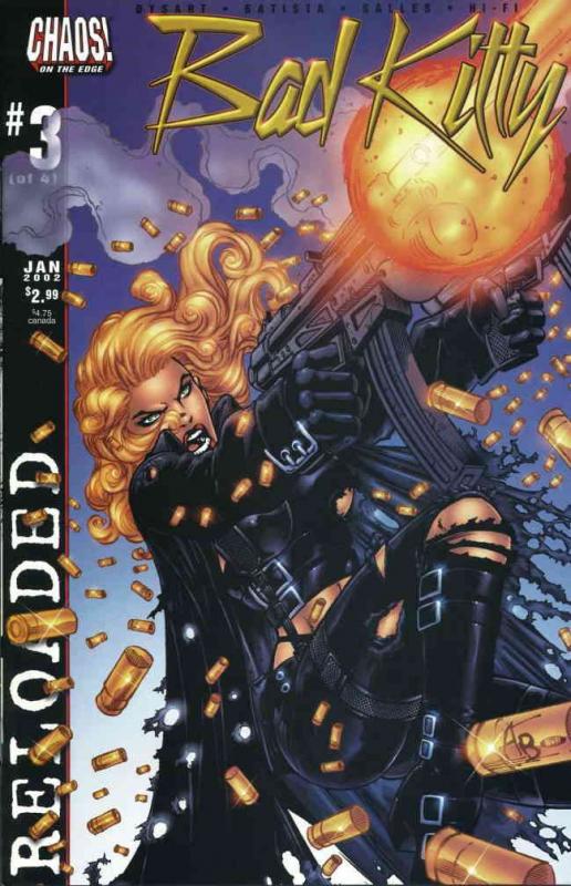 Item: Bad Kitty: Reloaded #3 | Publisher: Chaos | Cover Date: January 2002 | Writer: Joshua Dysart | Artist: Adriano Batista, Clebber Salles | With Economy shipping, each additional comic ships for just 50 cents more to customers in the USA. This listing contains a stock photo and information from ComicBase™ and © Human Computing. The stock photo is for reference only. If you would like to see a photo of the actual item, please message us prior to purchasing.Seller Information