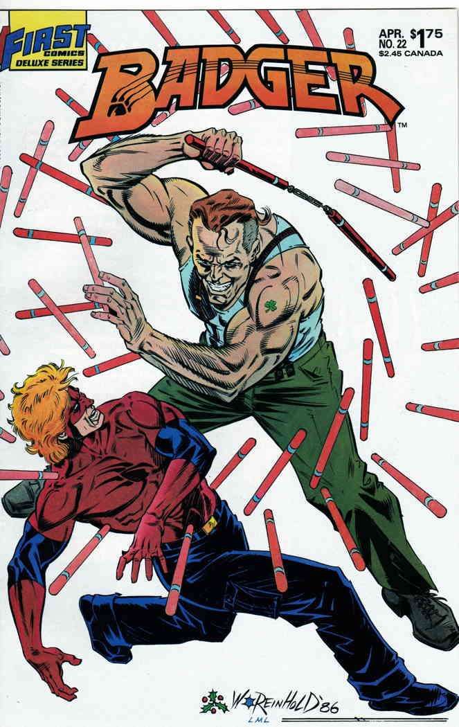 Item: Badger #22 | Publisher: First | Cover Date: April 1987 | Writer: Mike Baron | Artist: Bill Reinhold, Mark A. Nelson | Cover Artist: Bill Reinhold | Storylines: Range War; Lodzirra | With Economy shipping, each ... Read More