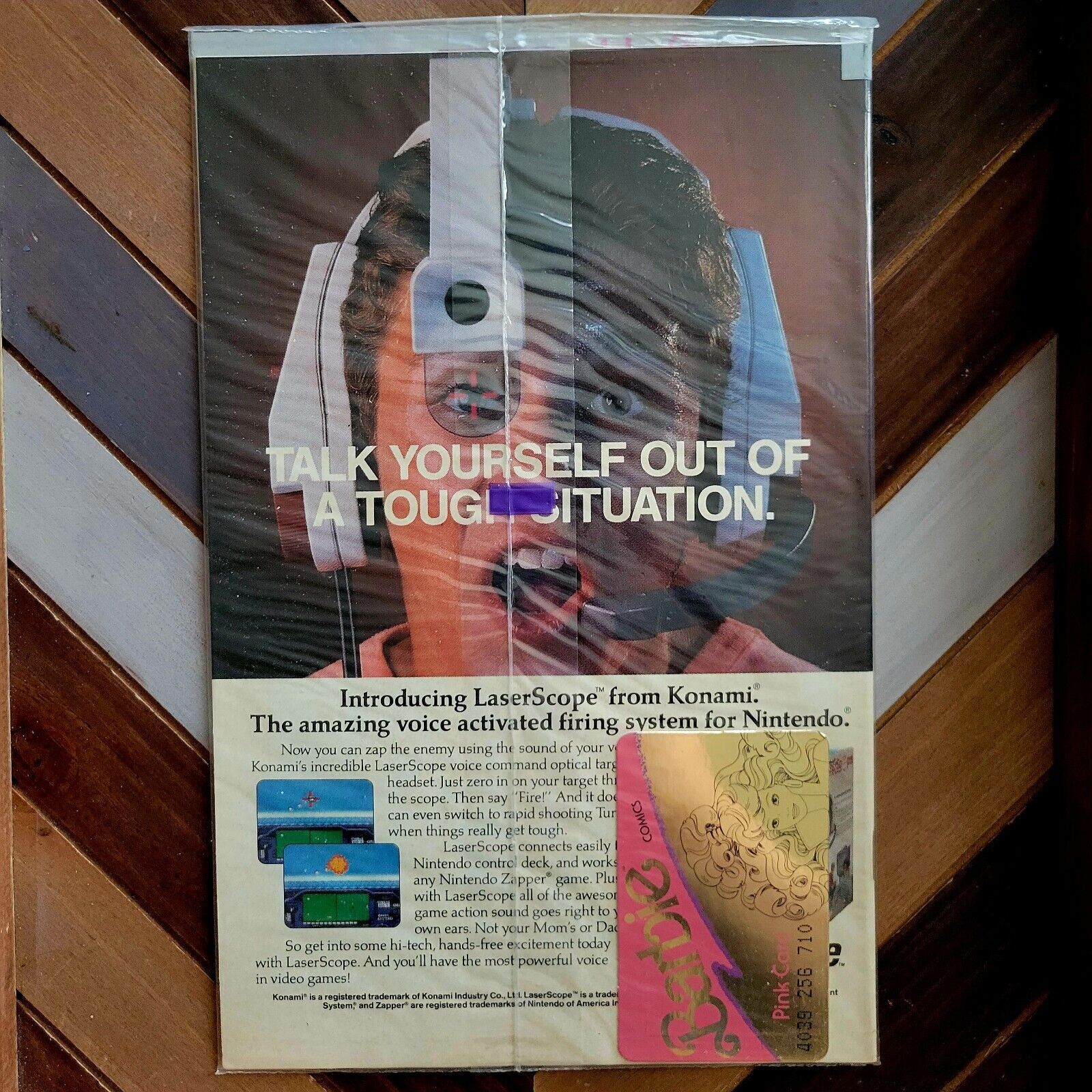 Still in original sealed polybag, includes a free gift: barbie comics "pink card" credit card