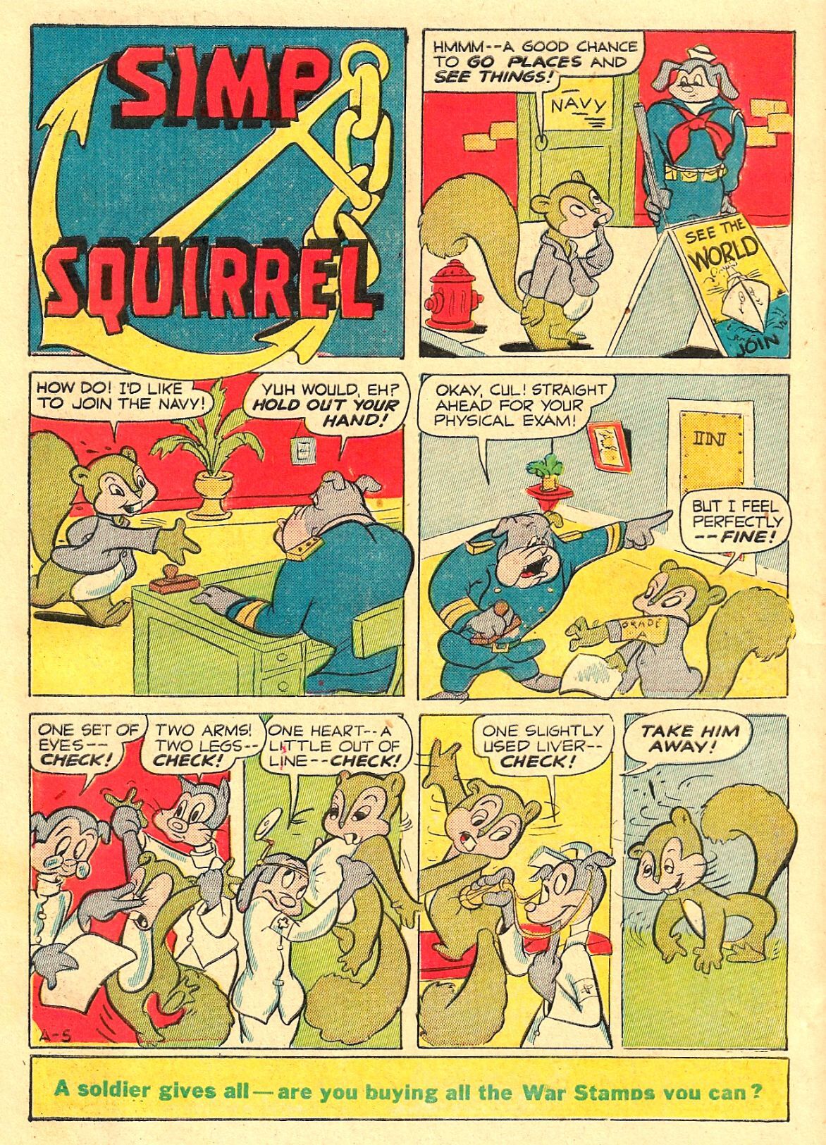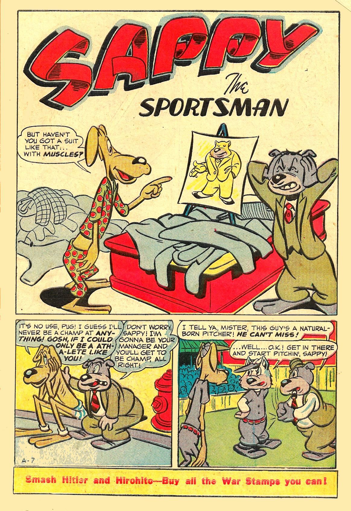 This nice, tight, 78-year-old perfect example of 1940s Funny Animal silliness has weathered well - pages are clean and not brittle or faded, and the binding is strong. There are some weak creases on the front cover, and unobtrusive date stamps on the back cover but we rarely see comics from this era that look so nice! Graded conservatively at a 7.0 FN/VF, Overstreet says $118 for this #1 issue in this condition is the going price. . but we say $95!!