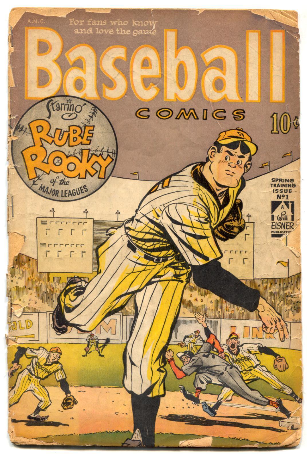 Grade: P Baseball Comics #1 1949- WILL EISNER ART- Golden Age POOR First issue. All Will Eisner art. Low grade, extra staples, covers loose. Rare. Grade: P SKU: CK75-230
