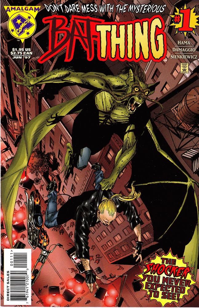 Bat-Thing #1 by Amalgam Comics copyright 1997. I have graded the comic book, using the Overstreet Grading Guide, at VERY FINE with the following defects: Light stress marks along the spine. The corners are starting to round. There is some light yellowing of the pages.Seller Information