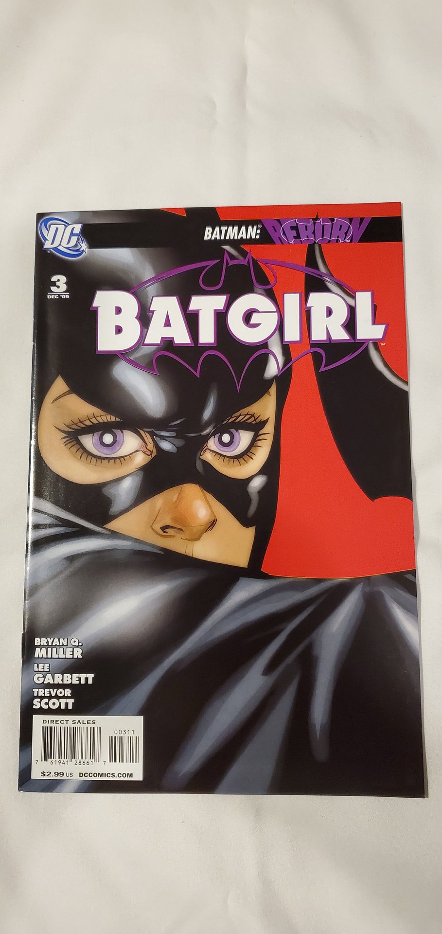 Written by bryan q. Miller. Art by lee garbett and trevor scott. Cover by phil noto. It's a new look and a new costume for the all-new batgirl! As crime in gotham city continues to rise, the newest member of the bat-family vows to wear the mantle of the bat and fight alongside batman and robin in their war on crime. There's just one problem: she hasn't told batman and robin yet! 32 pages, full color. Cover price $2.99.