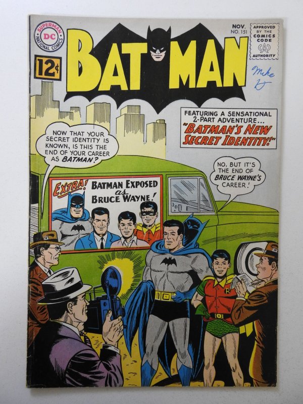 Batman #151 VG Condition ink on fc and 1st page